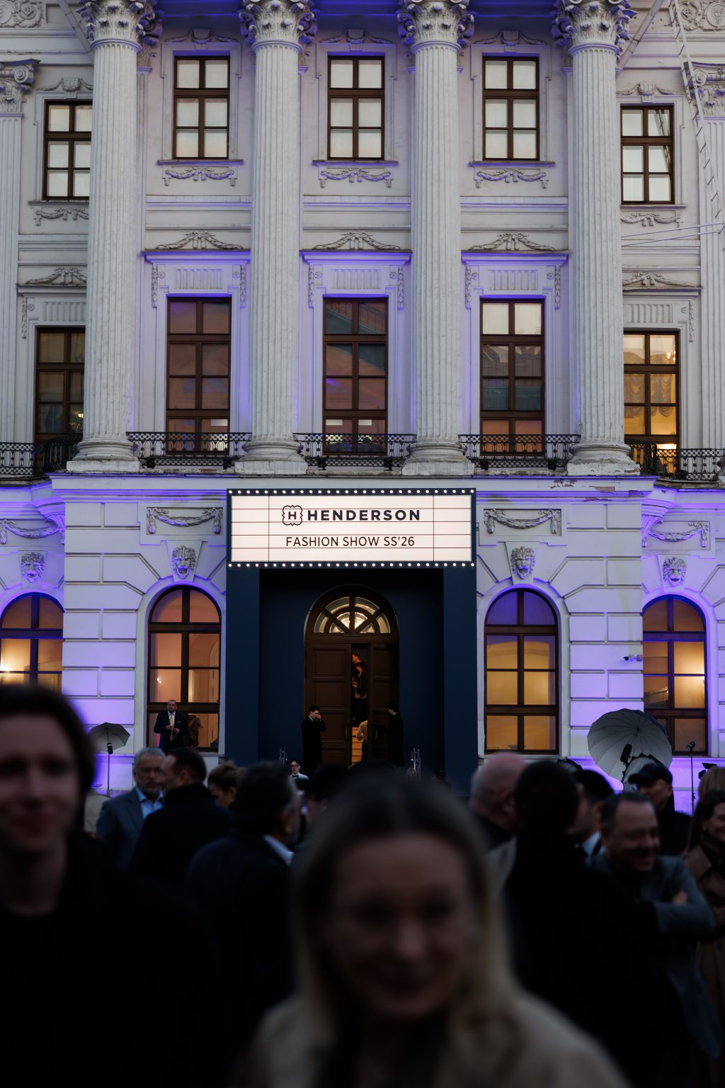 Кульминацией вечера стало появление на подиуме Павла Табакова, Григория Верника и Дмитрия Чеботарёва — представителей новой волны российского кино. Их участие усилило кинематографическую драматургию показа, выведя на первый план фигуру современного героя. Финальный выход дизайнеров Дома моды HENDERSON сопровождался продолжительными аплодисментами гостей.