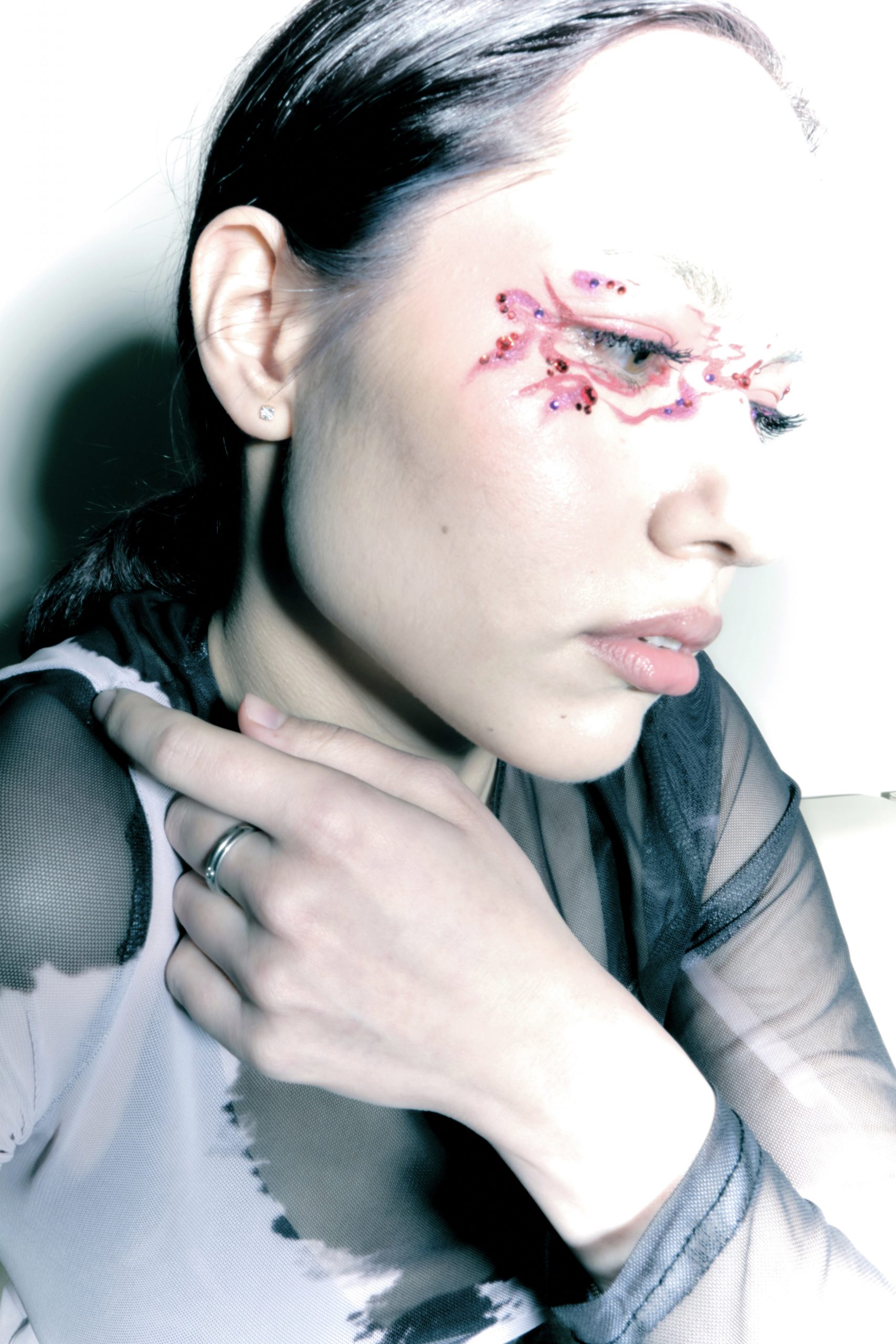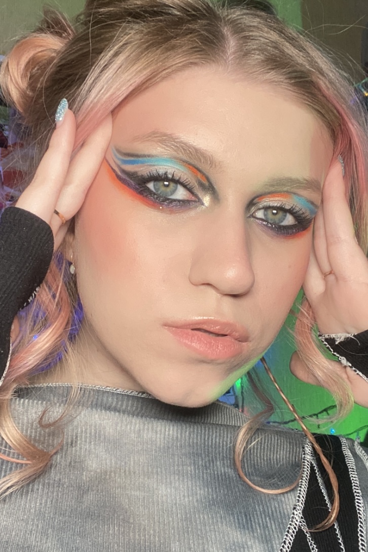 - Эстетика Coquette и Fairy Grunge сочетает миловидность с бунтарским характером. В макияже используют пастельные оттенки, много блёсток и сердечек, а также добавляют элементы гранжа — линии и стрелки.