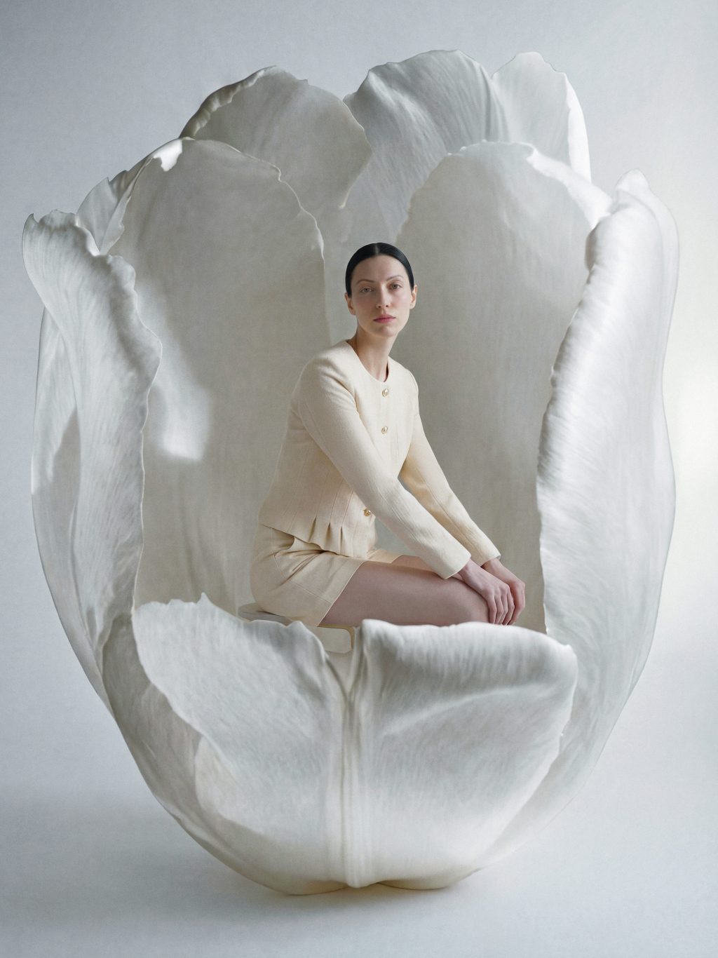 Вдохновением стали едва уловимые детали весны — аромат распускающихся бутонов, мягкость первого теплого ветра, прозрачность света. Коллекция словно приглашает замедлиться, прислушаться к себе и прожить этот момент обновления осознанно. Здесь каждый образ — символ внутреннего роста, мягкой силы и естественной уверенности.