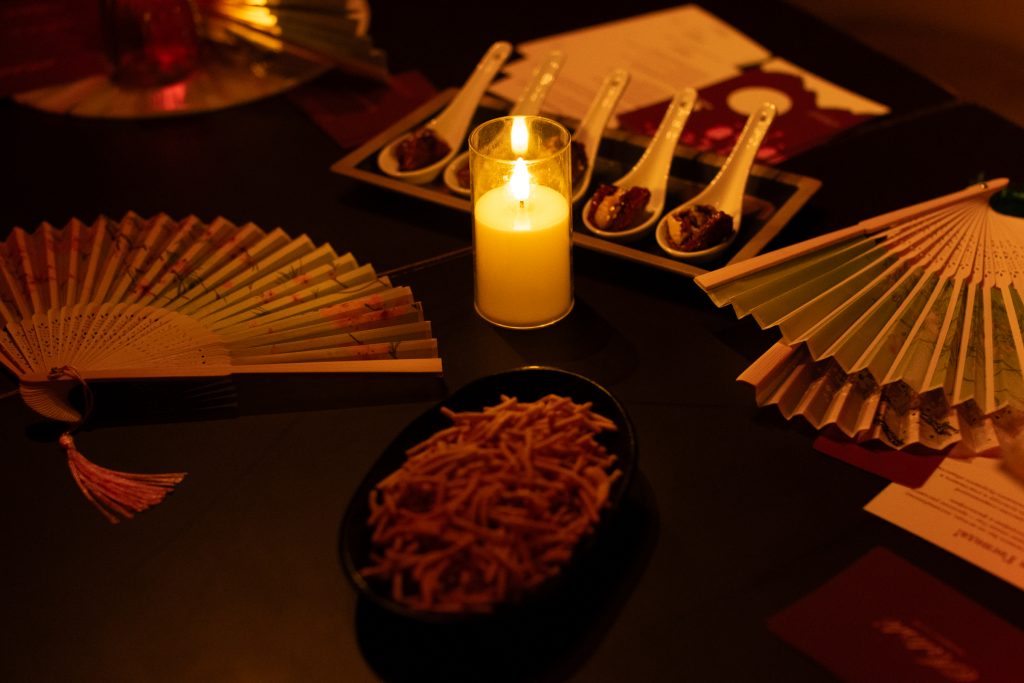 Гостей встречала атмосфера условного императорского дворца, где искусство выступало языком мышления, а внутренняя гармония — высшей ценностью. Вечер открывался авторскими спешл-дринками от Speak Low, задающими ритм погружения. Пространство наполняли перформансы каллиграфа: древние иероглифы рождались в режиме реального времени, превращая письмо в медитативный акт созидания. Аутентичные танцевальные номера в исполнении азиатских танцовщиц усиливали эффект присутствия, выстраивая визуальный диалог с историей.