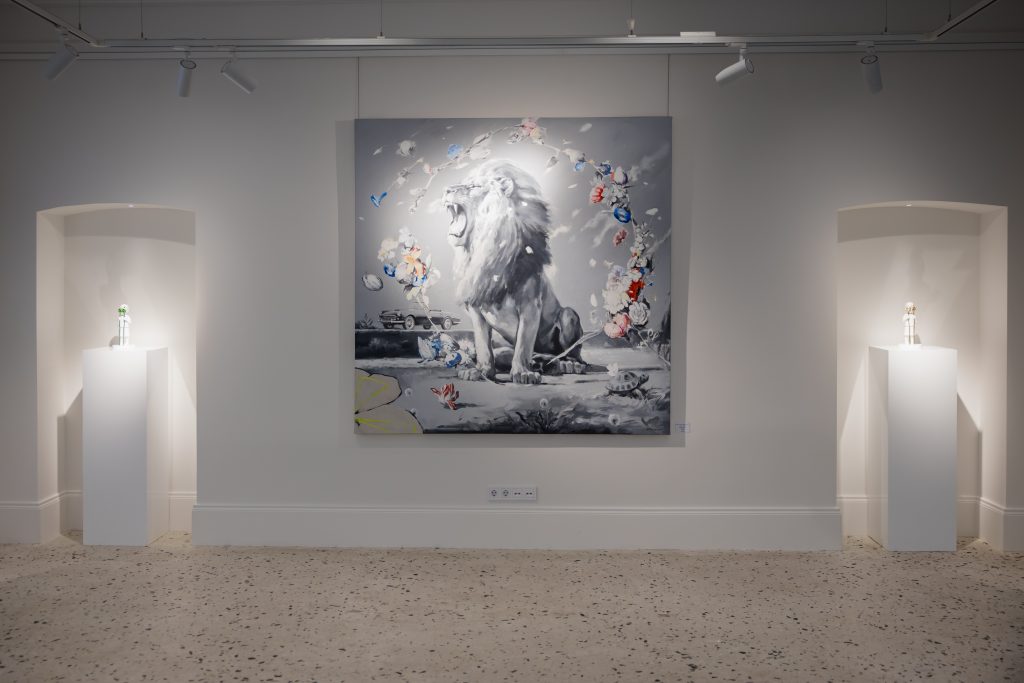 Павел Полянский соединяет природу и технологии, человека и машину, реальность и фантазию. В новых работах он помещает животных — львов, пантер, гепардов — в цветочные рамки, где цветы становятся не украшением, а средством защиты и тепла. Сила и фактурность зверей сочетается с нежностью и уязвимостью, создавая диалог между прошлым и настоящим художника.