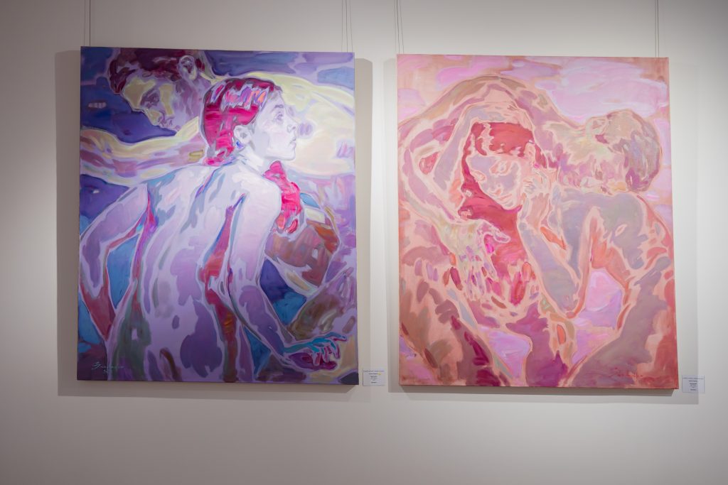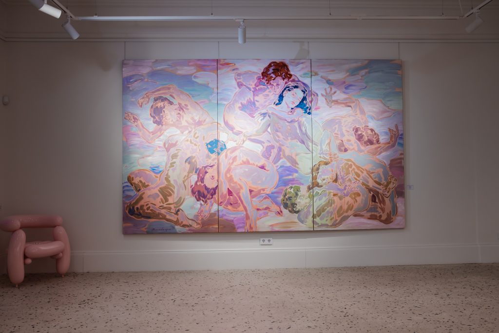 Ксения Сандеско фокусируется на внутреннем мире человека и хрупкости контакта. В серии «Инверсии» фигуры текучи, прозрачны, их формы растворяются и собираются вновь, передавая уязвимость и силу одновременно. Взаимодействие света и цвета, прикосновение и пауза создают универсальный язык интимного опыта, превращая личное в общедоступное.