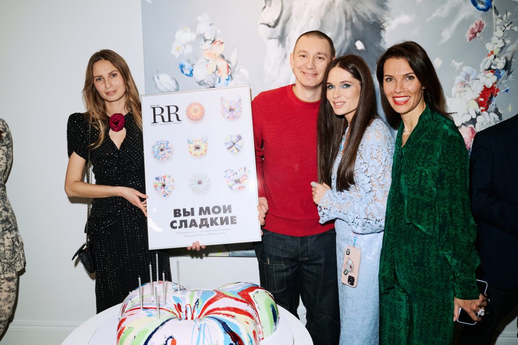 Вечер сопровождали изысканные коктейли на французском коньяке François de Martignac, выдержанном 4–8 лет в бочках из французского дуба, и арт-десерт от Tort4u — съедобный арт-объект в форме пончика по мотивам Джей Йонг Кима с зеркальной глазурью и серебряной инкрустацией.