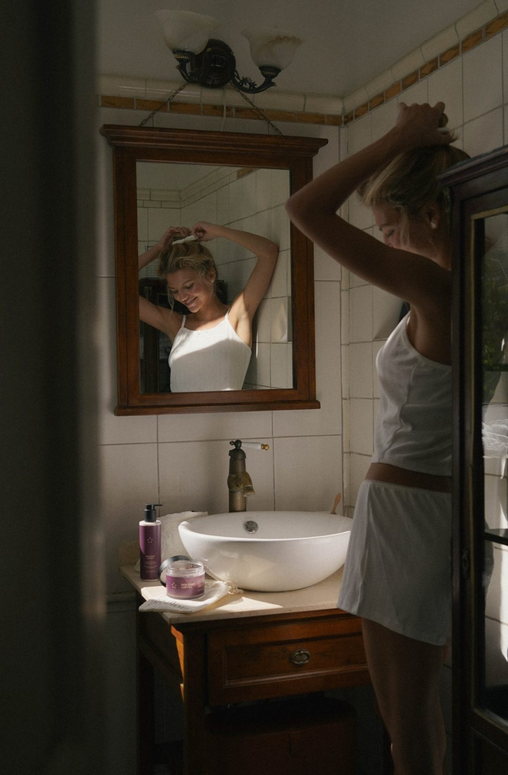 В набор вошли соляной скраб для тела и питательный крем с экстрактом инжира и пробиотиками — лёгкие по текстуре, но насыщенные по действию, в дополнении бренд дарит щетку для сухого массажа. После ухода кожа становится мягкой, будто напитанной изнутри, аромат — тёплый, чуть сладковатый, с медовыми и древесными нотами — остаётся как воспоминание о солнце.