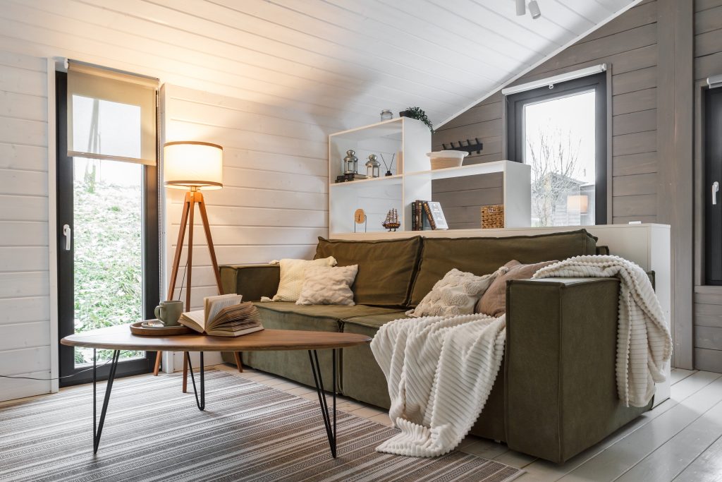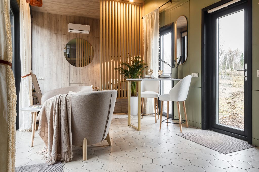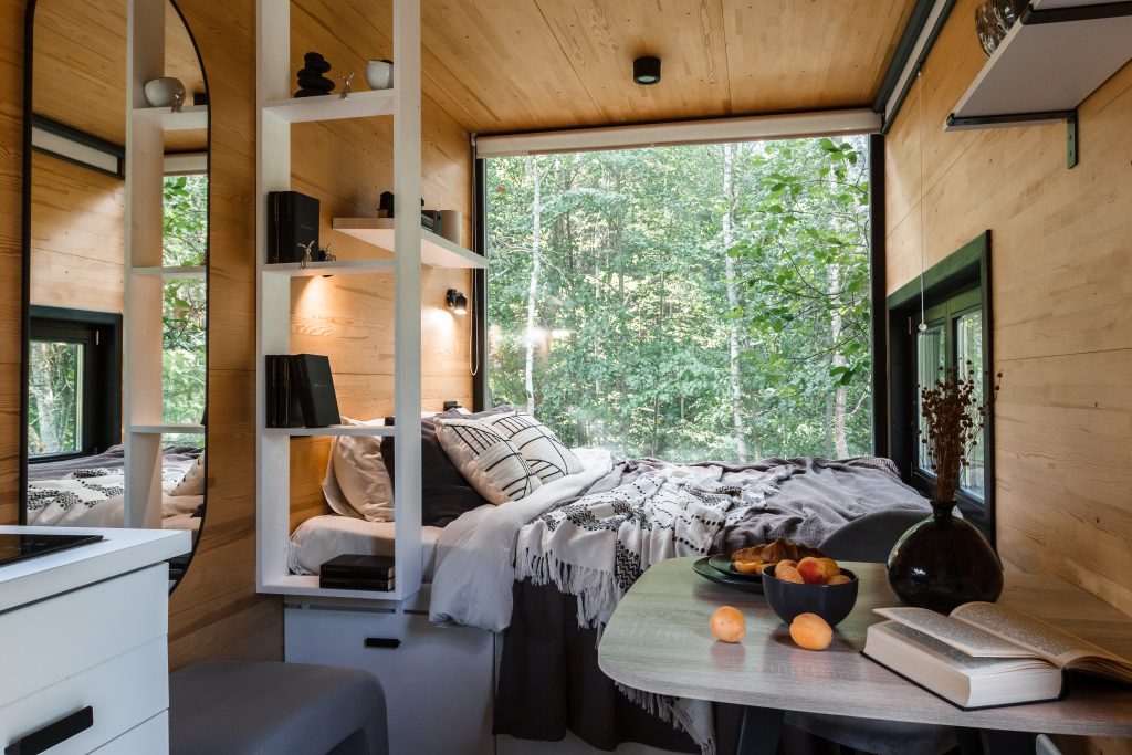 Внутри — продуманный минимализм без визуального шума. Где-то это лаконичные современные интерьеры, где-то — более теплые, «дачные» сценарии с текстилем и мягким светом. Важно одно: пространство не перегружено, а подчинено комфорту и спокойствию.