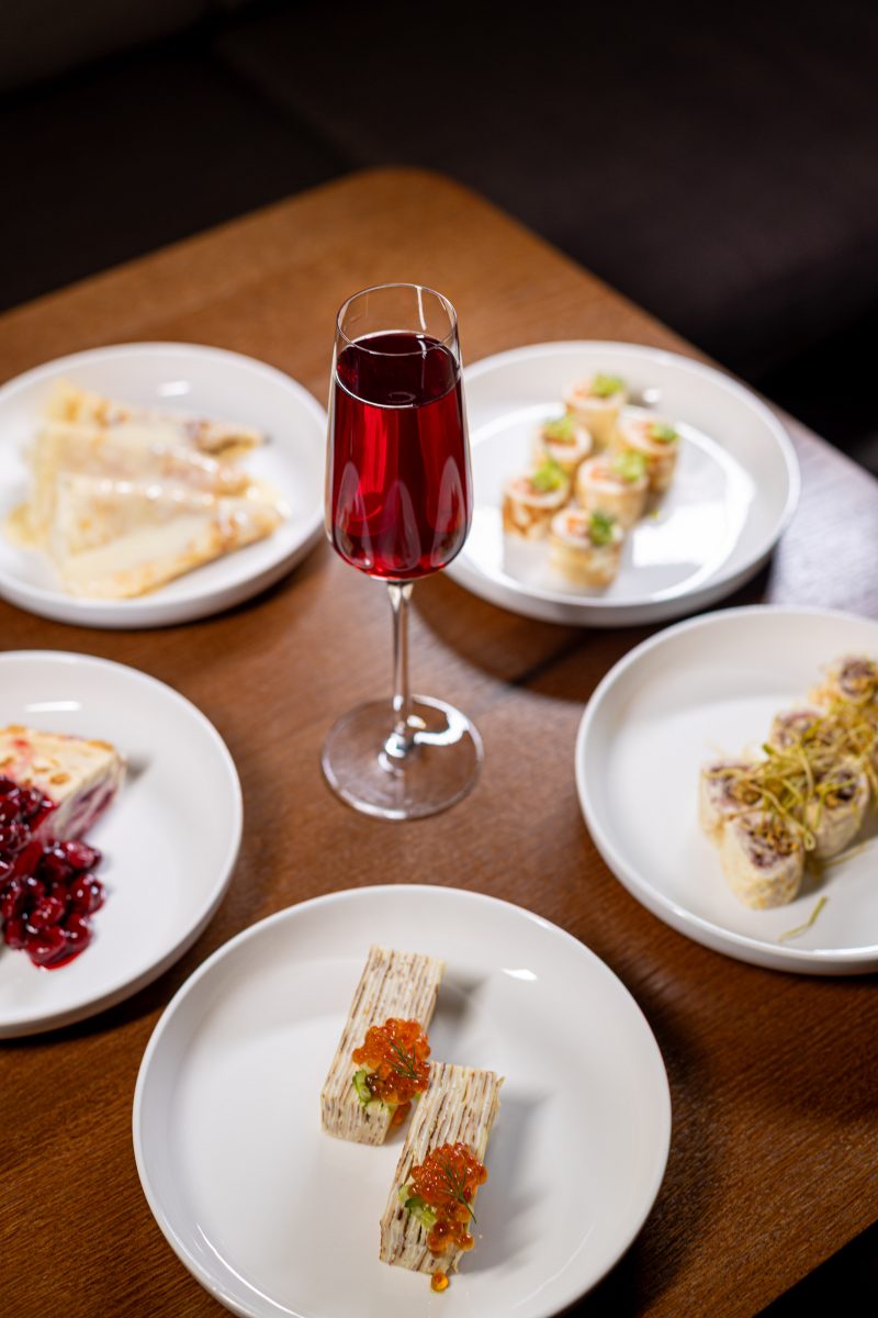 В этот день пространство изменится до неузнаваемости: строгий минимализм уступит место праздничному размаху. Барная стойка станет центром гастрономического изобилия — классические и авторские блины от шефа, румяные оладьи, нежные сырники, ассорти пирогов. Топпинги — от сметаны, сгущёнки и мёда до вишнёвого конфитюра, ростбифа и слабосолёной форели. Финальный штрих — блинный торт с вишнёвым конфитюром и кремом из маскарпоне.