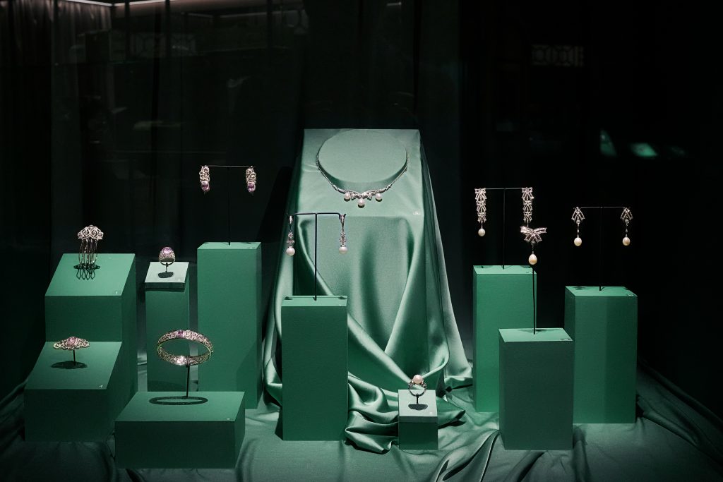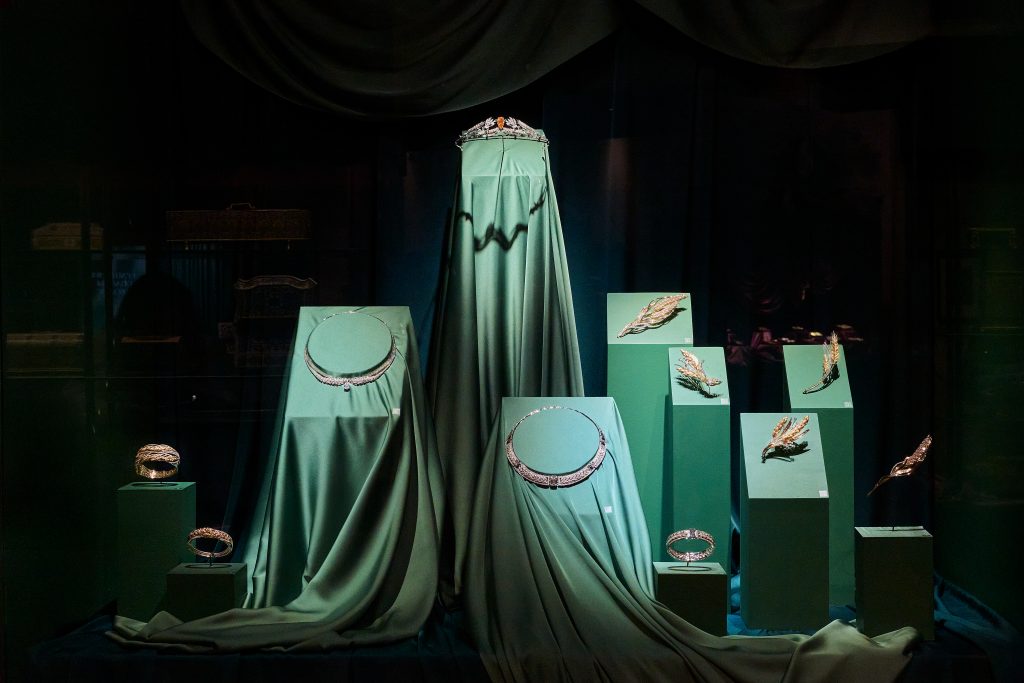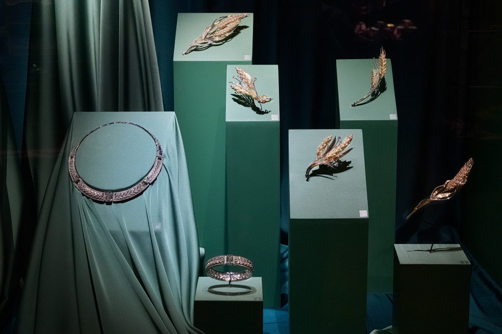 Значимая страница выставки посвящена драгоценным экспонатам ювелирного дома MIUZ Diamonds. На ней представлены украшения прошлого века из собрания музея, а также две современные коллекции.