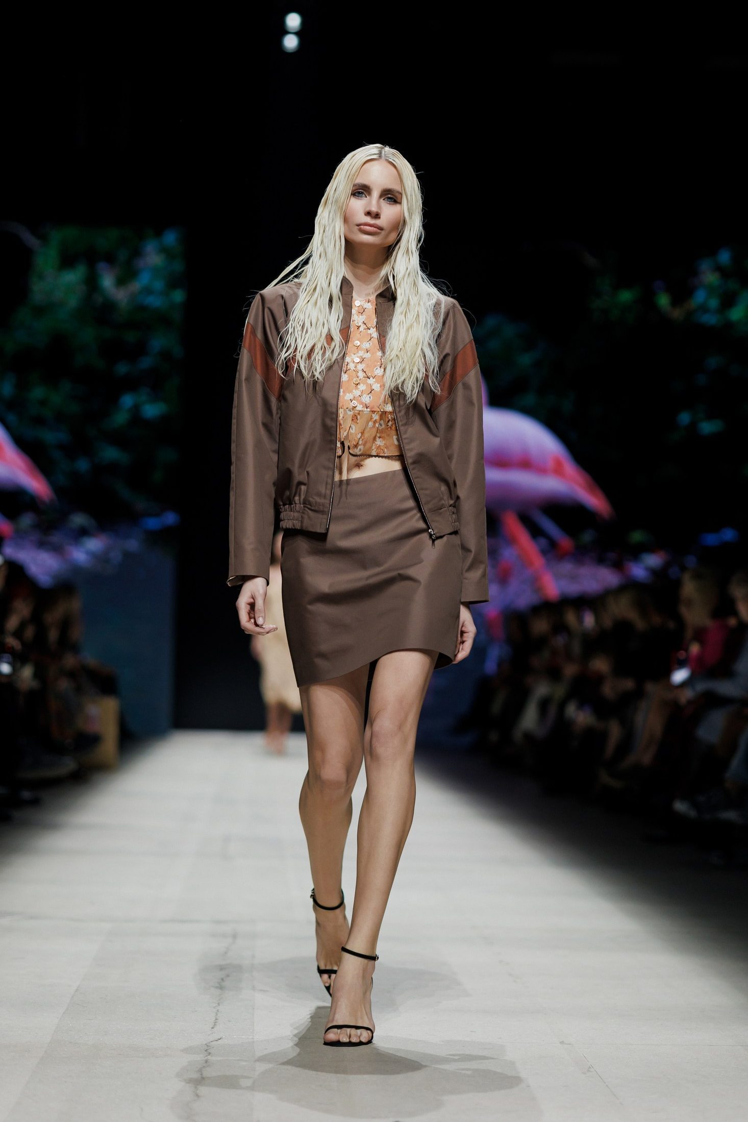 Отдельное внимание гостей привлекла звёздный PR-агент и продюсер Марина Ермошкина, ставшая одной из участниц показа: она появилась в мини-платье насыщенного ярко-розового оттенка, которое эффектно подчеркнуло её стройную фигуру и кукольную внешность, добавив образу дерзкого драйва и сценической энергии.