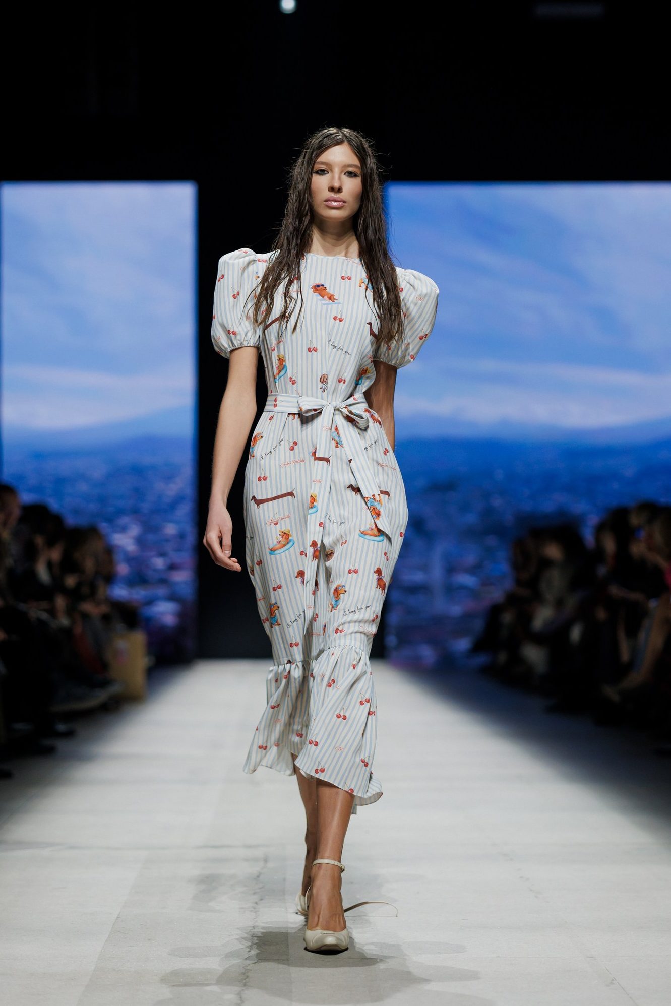 Особое внимание дизайнер Галина Подзолко уделяет принтам: ироничные и слегка ностальгические мотивы — чайные пакетики с фламинго, цветы, собачки с вишнями, ромашки и мишки — словно переносят зрителя в беззаботную, но яркую эстетику прошлого, переосмысленную через современный взгляд. Цветовая палитра варьируется от песочных и терракотовых оттенков до глубокого шоколада, которые находят своё отражение в бомберах и плащах, формируя характер и силу силуэта.