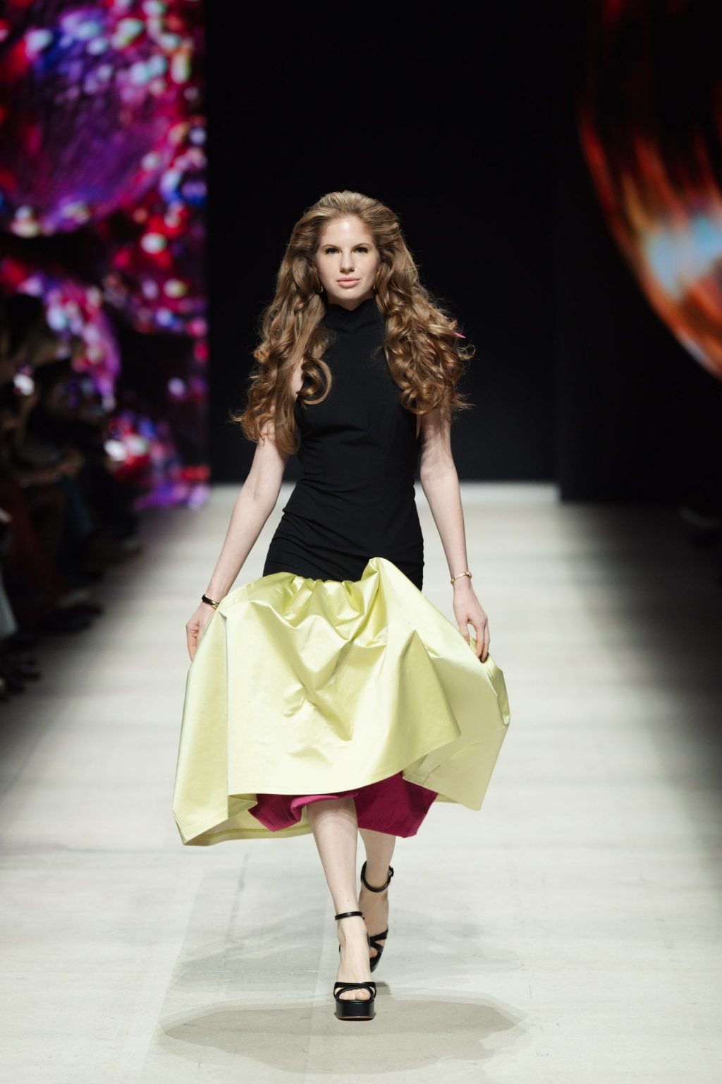 Особое внимание уделено работе со светом и фактурами: текучие ткани, игра бликов и насыщенная палитра создают эффект внутреннего сияния. В этом сезоне LI LAB отходит от привычного доминирования чёрного, вводя в коллекцию фуксию, глубокий зелёный и сложные бежевые оттенки. Цвет становится не просто акцентом, а полноценным инструментом эмоциональной выразительности.