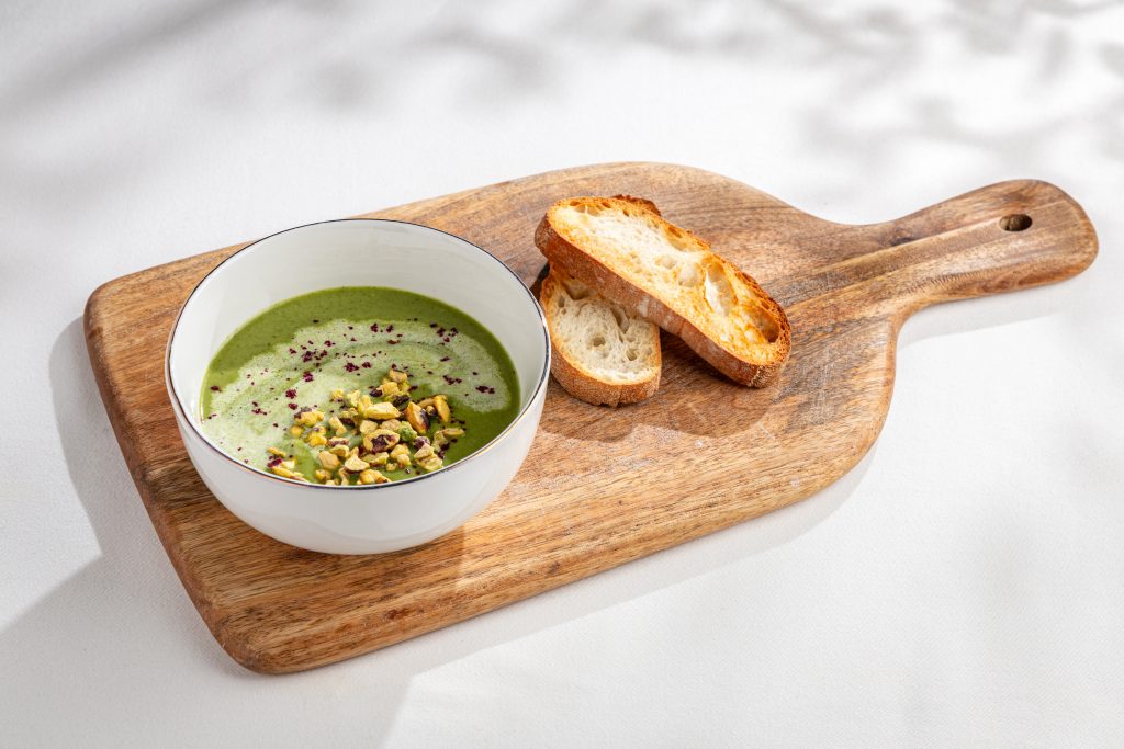 Более сытные позиции продолжают линию комфорта и вкуса: пхали из запечённой тыквы и кутаб из тандыра с тыквенной начинкой. В разделе супов — крем-суп из брокколи и шпината с бархатистой текстурой и постный борщ на овощном бульоне с красной фасолью и чесночными гренками.