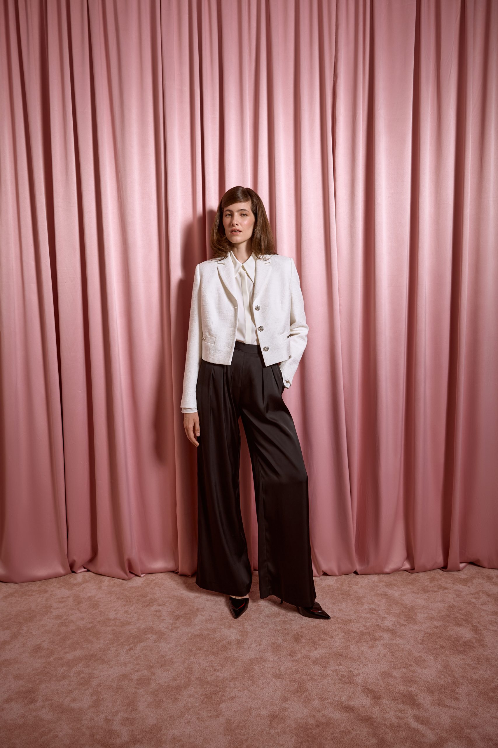 В капсуле Allure особое значение имеют тщательно подобранные материалы, каждый из которых придает коллекции уникальный характер. Твид отличается легкостью благодаря высокому содержанию хлопка, а костюмная ткань обладает нежным сатиновым блеском за счет добавления волокон тенсела. Завершающим штрихом в палитре фактур становится атлас — воздушный и мягко струящийся при каждом движении.