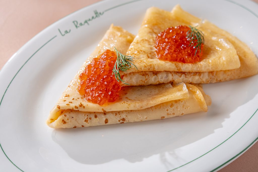 В бистро La Raquette Масленицу встречают с тем самым размахом, который уместен и в традиции, и в современной гастрономии. С 16 по 22 февраля здесь действует специальное меню, посвящённое главному символу недели — блинам, в интерпретации, сочетающей французскую эстетику и русскую щедрость.