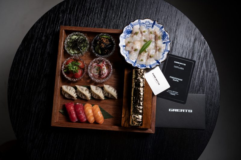 Центральным элементом проекта стал авторский сет от шеф-повара Егора Калинина. Меню работает на контрастах и нюансах, объединяя японскую классику с современной интерпретацией. В составе — ролл с вагю, дим сам с уткой и сливовым соусом, севиче из сибаса с маринованным васаби, нигири с лососем и тунцом аками, а также ассорти маринованных овощей. Композиция выстроена с акцентом на чистоту вкуса, качество продукта и безупречную технику исполнения. Стоимость сета — 20 000 рублей.