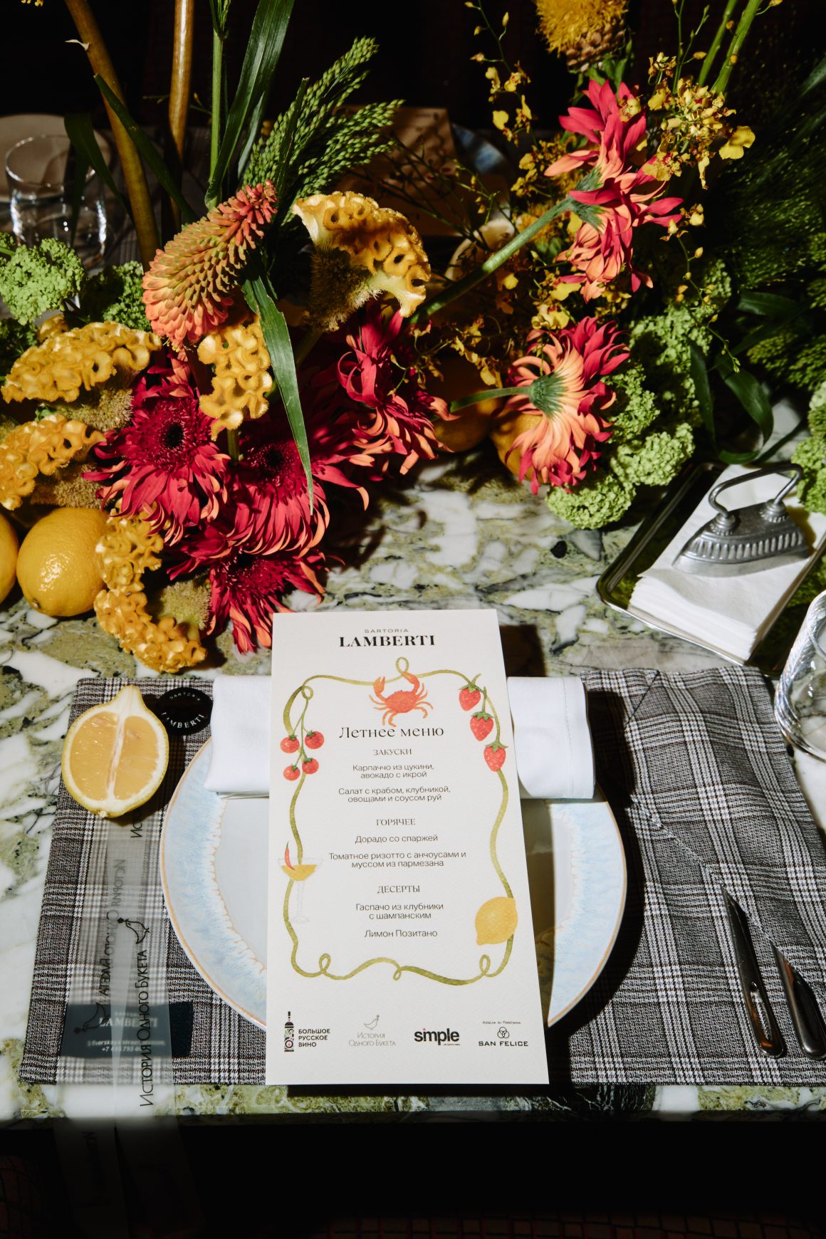 К летнему меню была представлена и новая коктейльная карта от Кирилла Сенча. Гости бранча попробовали фирменный Bellini Rossini, авторский Aperol по эксклюзивному рецепту Уиллиама Ламберти и освежающий Lamberti Spritz с артишоковым ликером и итальянским вермутом.