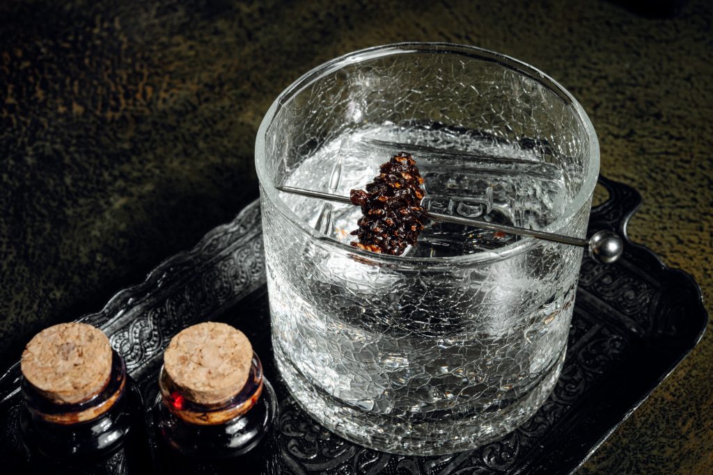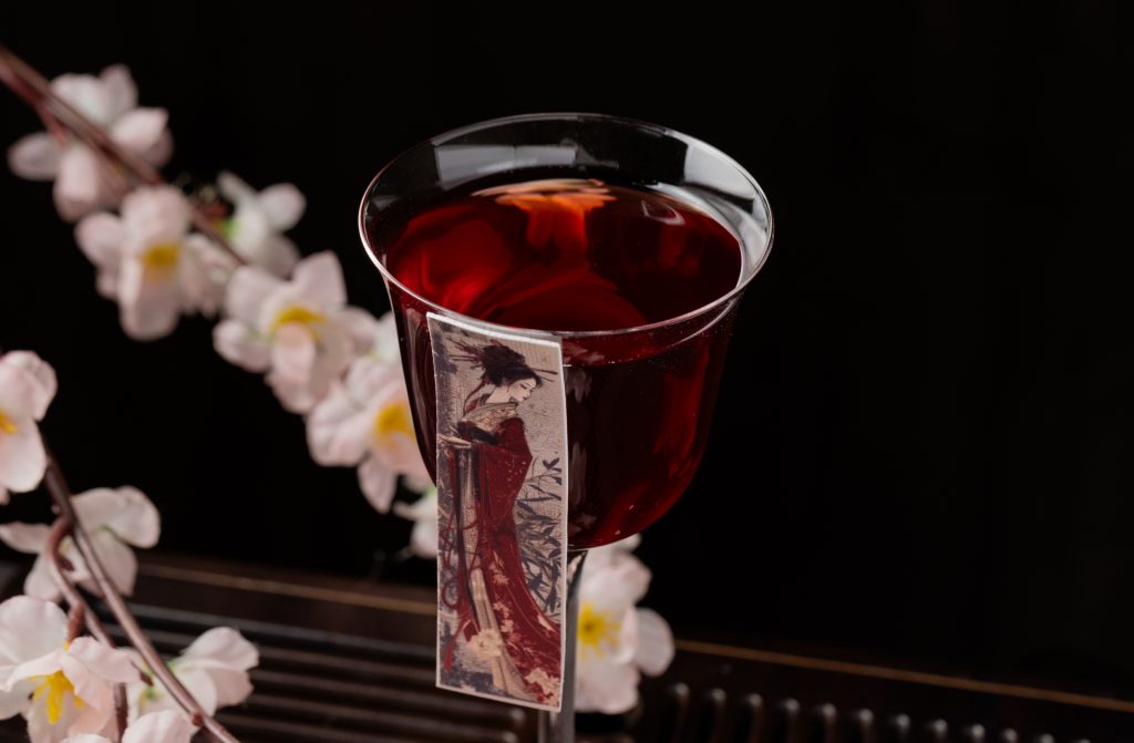 - Первый коктейль — Кэнбоси (牽牛星), названный в честь Звезды Пастуха, — насыщенный и страстный. Он создан на основе портвейна и земляничного соджу, дополнен дымными нотами японской водки сётю и щепоткой соли. Этот коктейль воплощает земную силу, верность и притяжение.