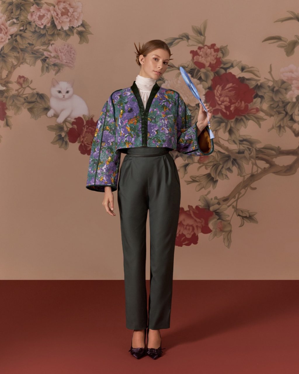 Коллекция объединяет силу традиционных форм и деликатность шелка. В центре — воротники-стойки, отсылающие к платьям ципао маньчжурских женщин эпохи династии Цин. Здесь — жакеты из шелка и жаккарда, платья и блузы, украшенные кистями с бисерной вышивкой, архитектурные брюки, юбки и пальто из кожи или шелка с фирменной стёжкой и мягкой скульптурностью.