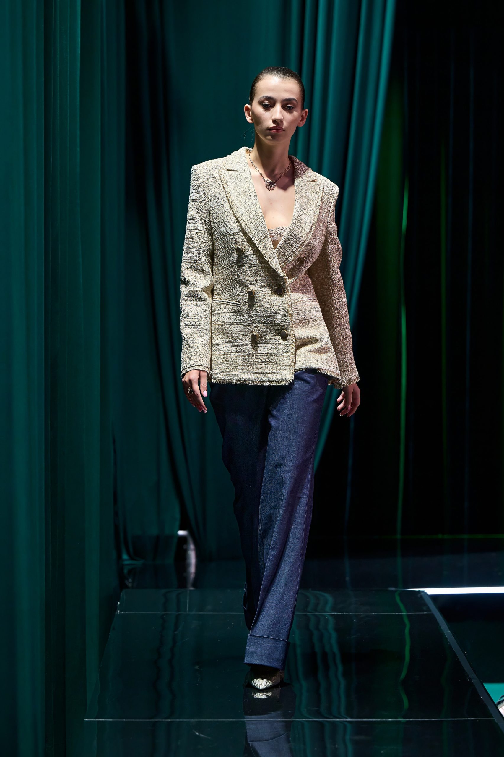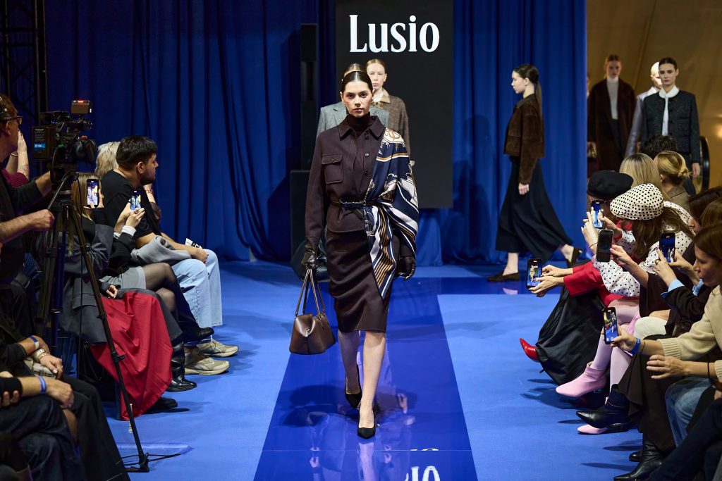 Следующим свою коллекцию показал международный бренд женской одежды LUSIO. Бренд создает коллекции в стиле утонченной элегантности и современной классики, а собственное производство полного цикла позволяет гарантировать высокое качество каждой детали. Премиальные натуральные ткани, продуманные силуэты и европейская эстетика делают вещи LUSIO актуальными и не подвластными течению времени. Сегодня бренд представлен более чем в 20 флагманских магазинах в России.