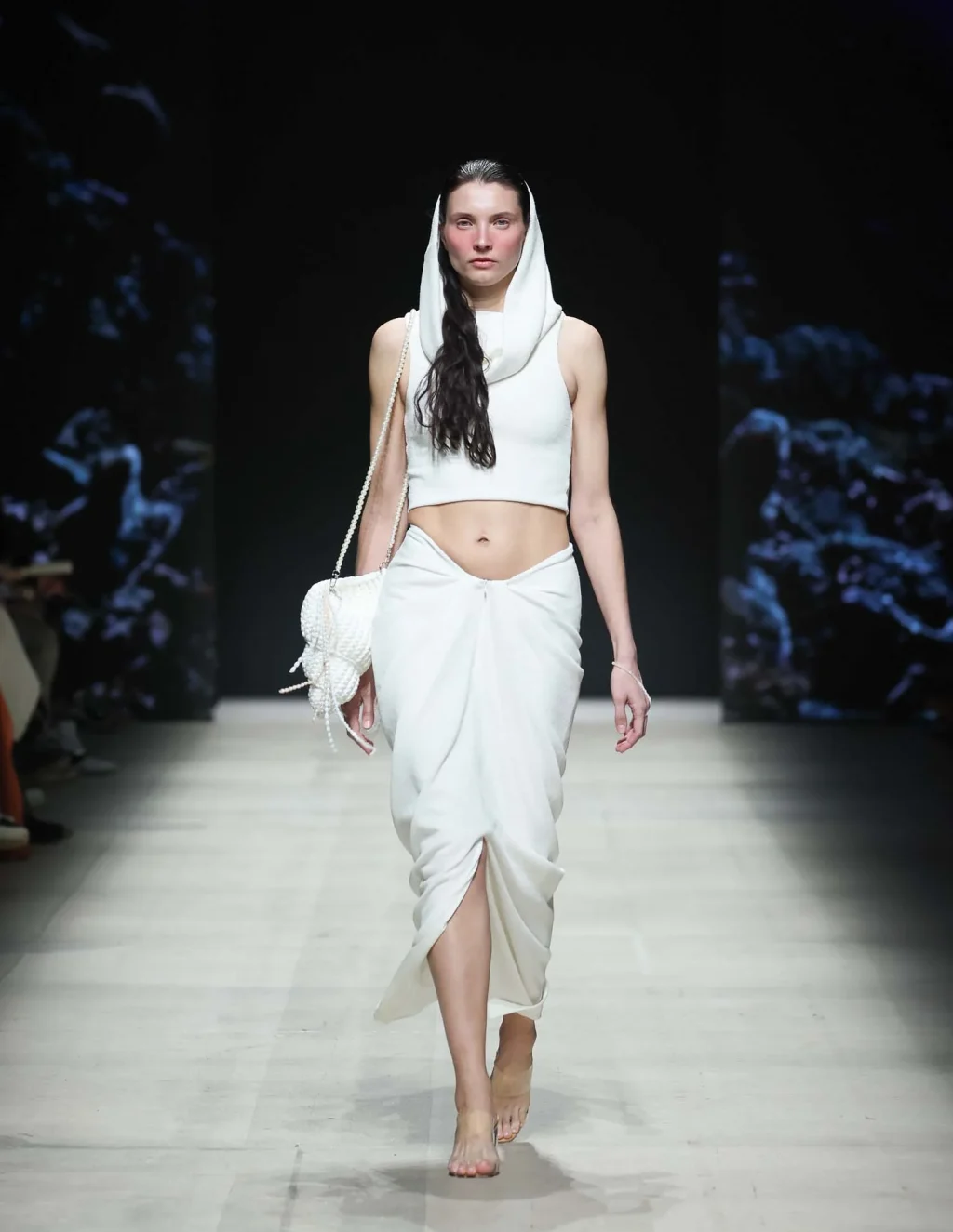 Один из самых концептуальных показов недели. Коллекция «Inside Out» стала высказыванием о внутренней свободе, где изнанка превращается в главный эстетический код. Швы, линии кроя и конструктивные элементы выходят на первый план, формируя честный и почти исповедальный язык бренда.