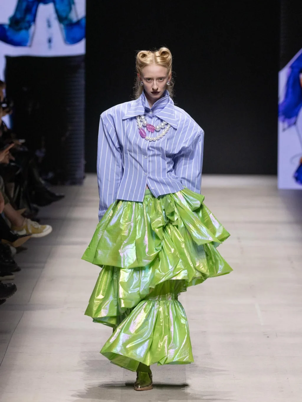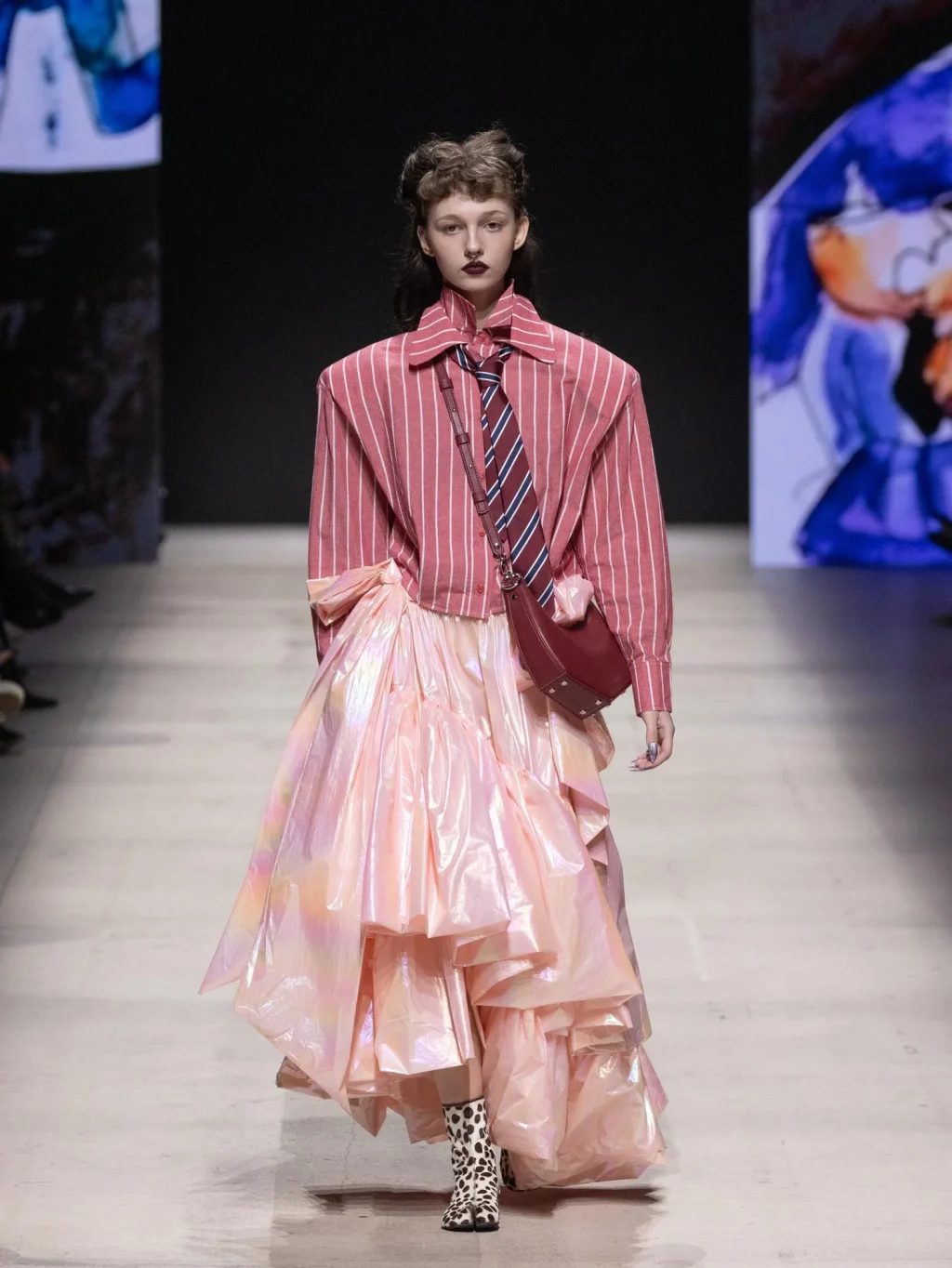 Один из самых эмоциональных показов сезона. Коллекция стала личной рефлексией о свободе и смелости быть собой, переосмысляя эстетику 90-х через призму современности.
