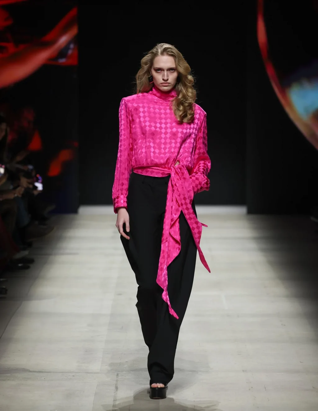Отдельным акцентом шоу стало появление Марины Ермошкиной в мини-платье насыщенного розового оттенка, добавившего показу энергии и яркого светского драйва.