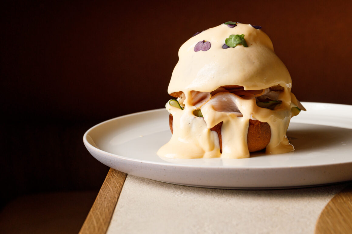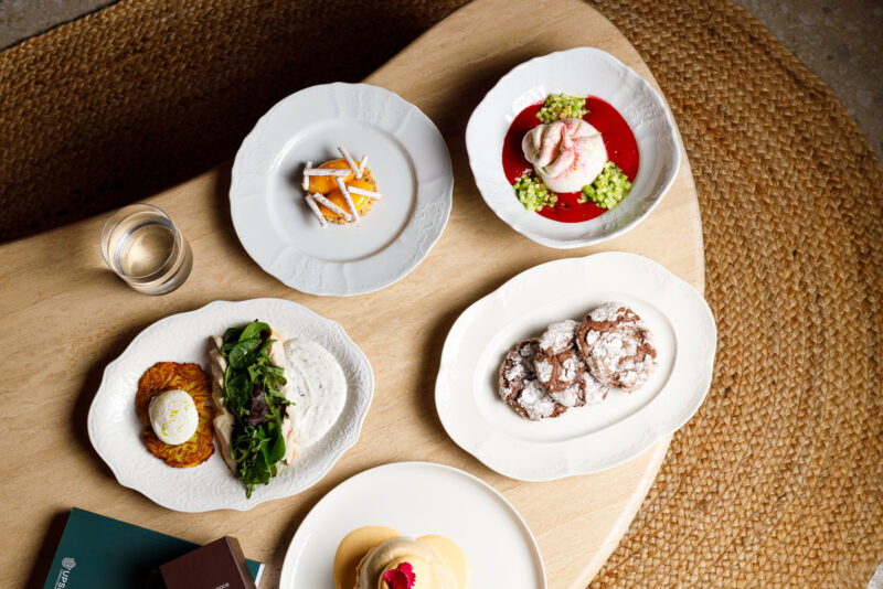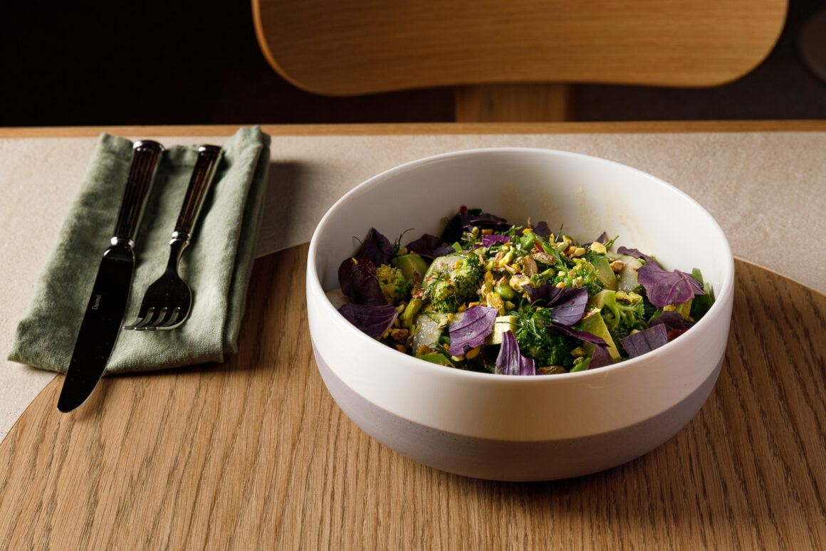 В меню LOOK UP представлена комфортная, современная кухня, основанная на мировых гастрономических трендах и лёгких техниках приготовления. Здесь можно попробовать такие блюда, как нерка с гаспачо в виде мороженого, сезонные сморчки с нежной страчателлой, скумбрию с фенхелем и молодой черемшой, а также тушённые говяжьи щечки с сельдереем. На десерт предлагают щавелевое мороженое с клубничным тартаром. Особое внимание уделено шоколатье — в кафе выпускают авторские конфеты ручной работы. В ближайшее время откроется собственная пекарня, где будут выпекать хлеб и другую выпечку.