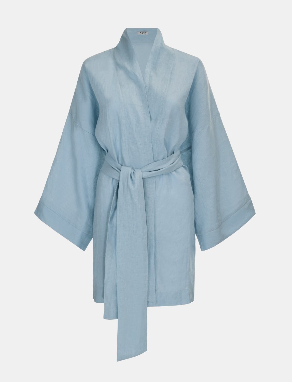 В центре коллекции — льняные халаты-кимоно в длинах макси и мини: трендовый лимонный оттенок и освежающий светло-голубой. Легкие, дышащие и невероятно стильные, они созданы для отдыха, путешествий и домашних ритуалов. Это вещи, которые будут сопровождать вас в моменты уединения и заботы о себе.