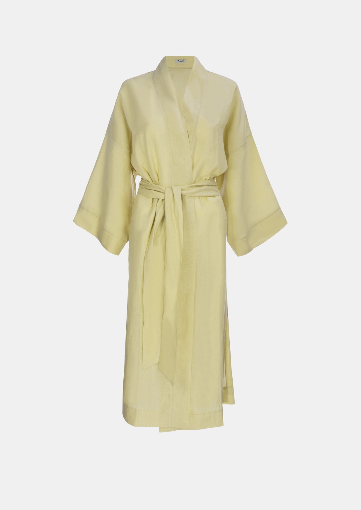 В центре коллекции — льняные халаты-кимоно в длинах макси и мини: трендовый лимонный оттенок и освежающий светло-голубой. Легкие, дышащие и невероятно стильные, они созданы для отдыха, путешествий и домашних ритуалов. Это вещи, которые будут сопровождать вас в моменты уединения и заботы о себе.