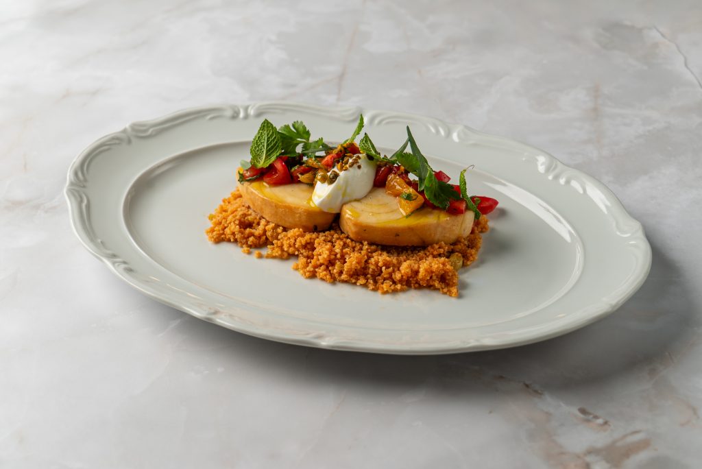 Главный герой обновлённого меню — филе эсколара с кускусом (1290 руб.). Нежная, бархатная рыба с тонким маслянистым вкусом подаётся на подушке из кускуса в марокканском стиле, с акцентом на восточные специи и цитрусовую свежесть. Завершает композицию кнель из греческого йогурта и авторская версия табуле — освежающая, ароматная, с утончённой кислинкой.