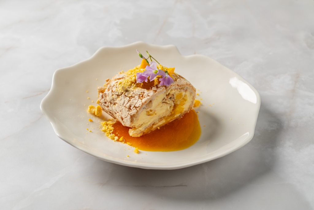 Для тех, кто любит сладкие аккорды, обновилась и десертная витрина. Меренговый рулет с манго и маракуйей (850 руб.) — воздушное сочетание маскарпоне, свежих сливок и тропических фруктов, дополненное пикантной нотой юдзу.