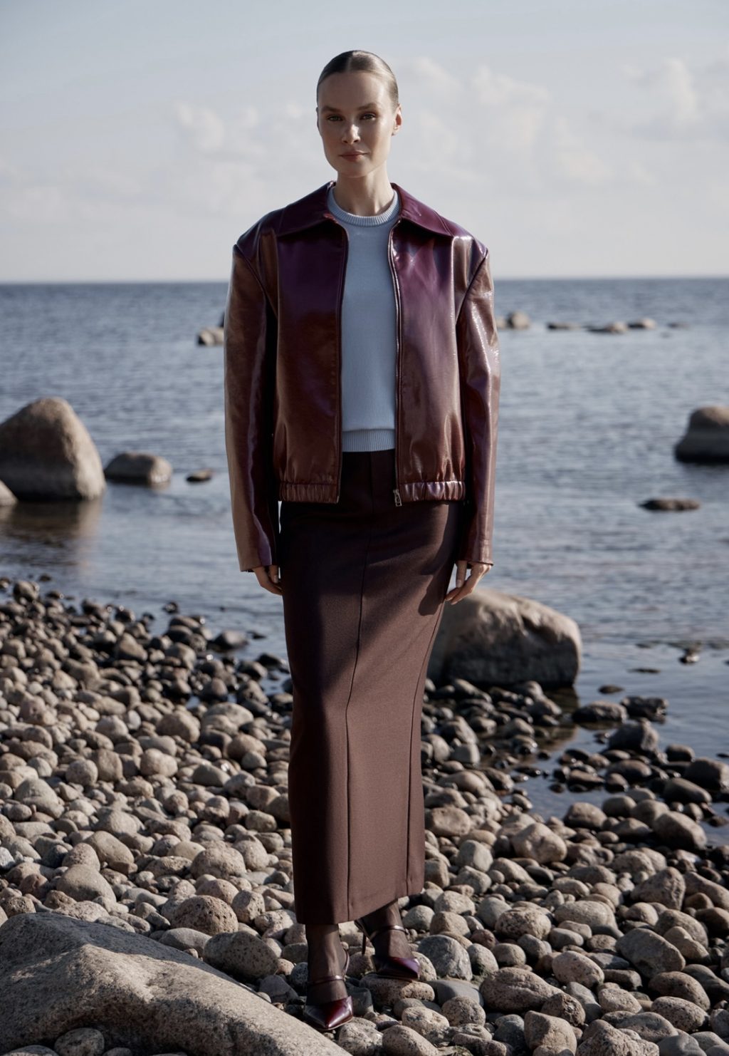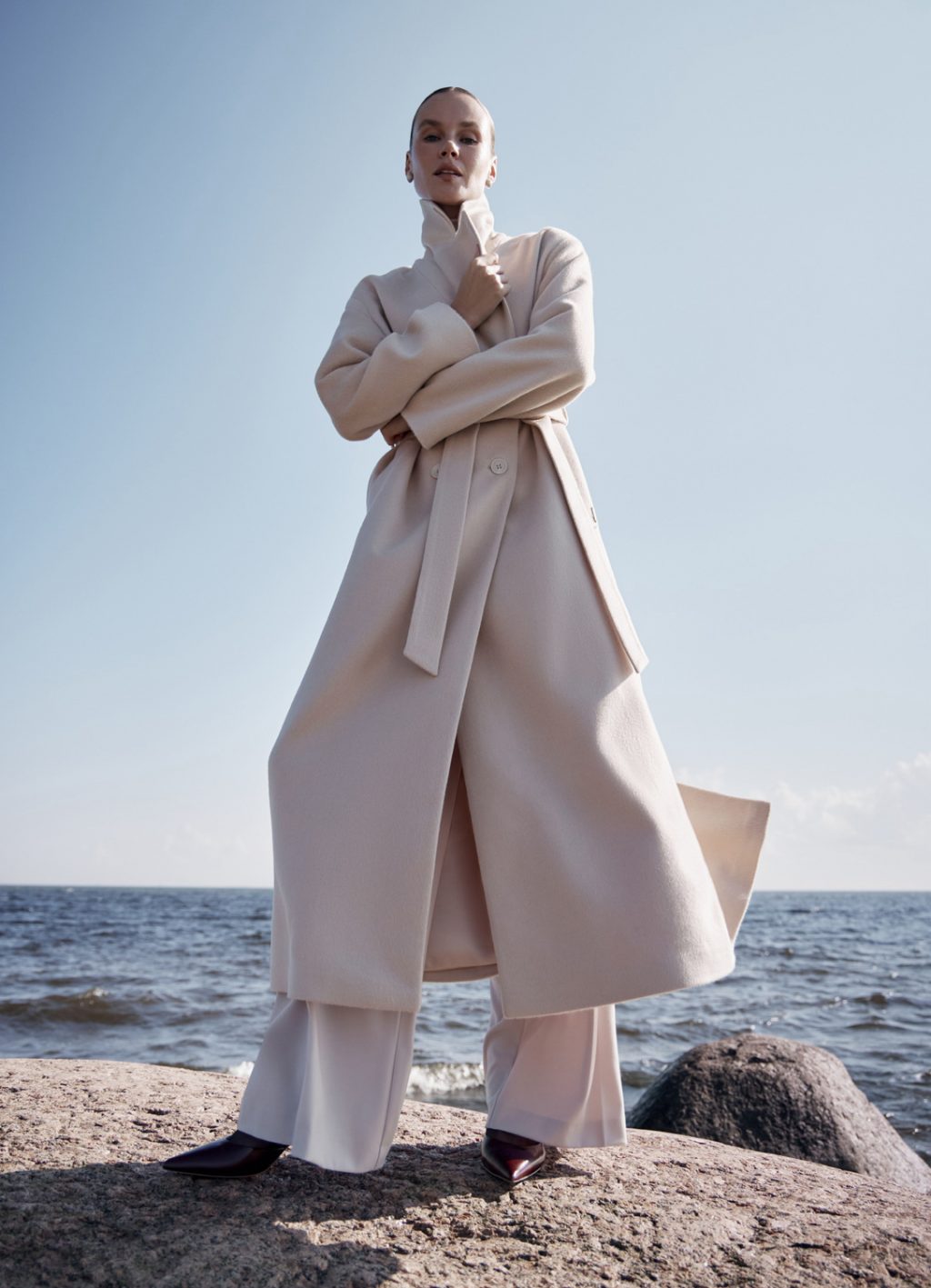 Кремовый и графитовый, пыльный голубой, оливковый и шоколадный: главные оттенки капсулы складываются в спокойную гамму. Яркие акценты — алый и бургунди — появляются в палитре, как символ энергии, которую хочется сохранять вне зависимости от времени года.