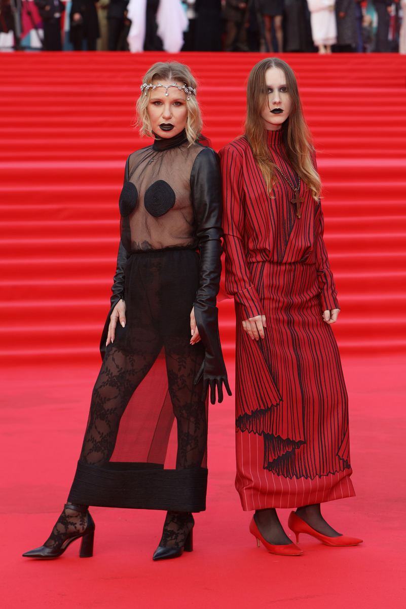 - Валерия Гай Германика, как всегда, осталась верна провокации — «голое» платье с кожаными элементами, ажурные колготки и тёмный макияж стали одним из самых обсуждаемых выходов вечера.