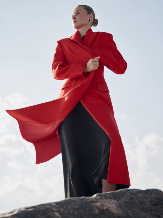 Позже в тот же день актриса снова привлекла внимание, выйдя на улицы города в строгом чёрном наряде. На этот раз она выбрала чёрную блузку, поверх которой повязала элегантный шарф и длинное пальто от Tove. Внизу она сочетала чёрные брюки-сигареты от Toteme с туфлями на ремешках от Manolo Blahnik, создавая образ, который сочетал в себе элегантность и сдержанность.