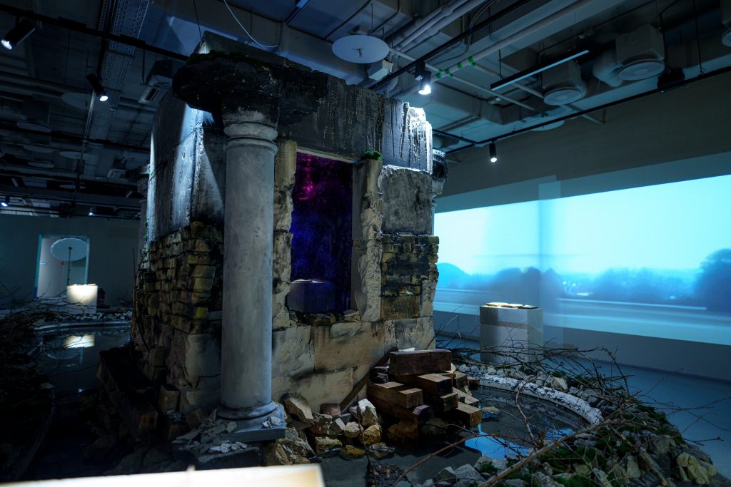 Над визуальной вселенной выставки почти год работал художник Александр Тито. В проекте соединены видео, музыка, фотография, коллаж, 3D-печать, бетон, дерево и камень. Одним из центральных образов становится арт-объект «Оазис» — водное пространство с кислотно-синими кувшинками и отражающейся видеоинсталляцией, напоминающей монотонный пейзаж за окном поезда Москва — Санкт-Петербург. Внешнее спокойствие здесь скрывает внутреннюю пустоту — один из ключевых мотивов проекта.