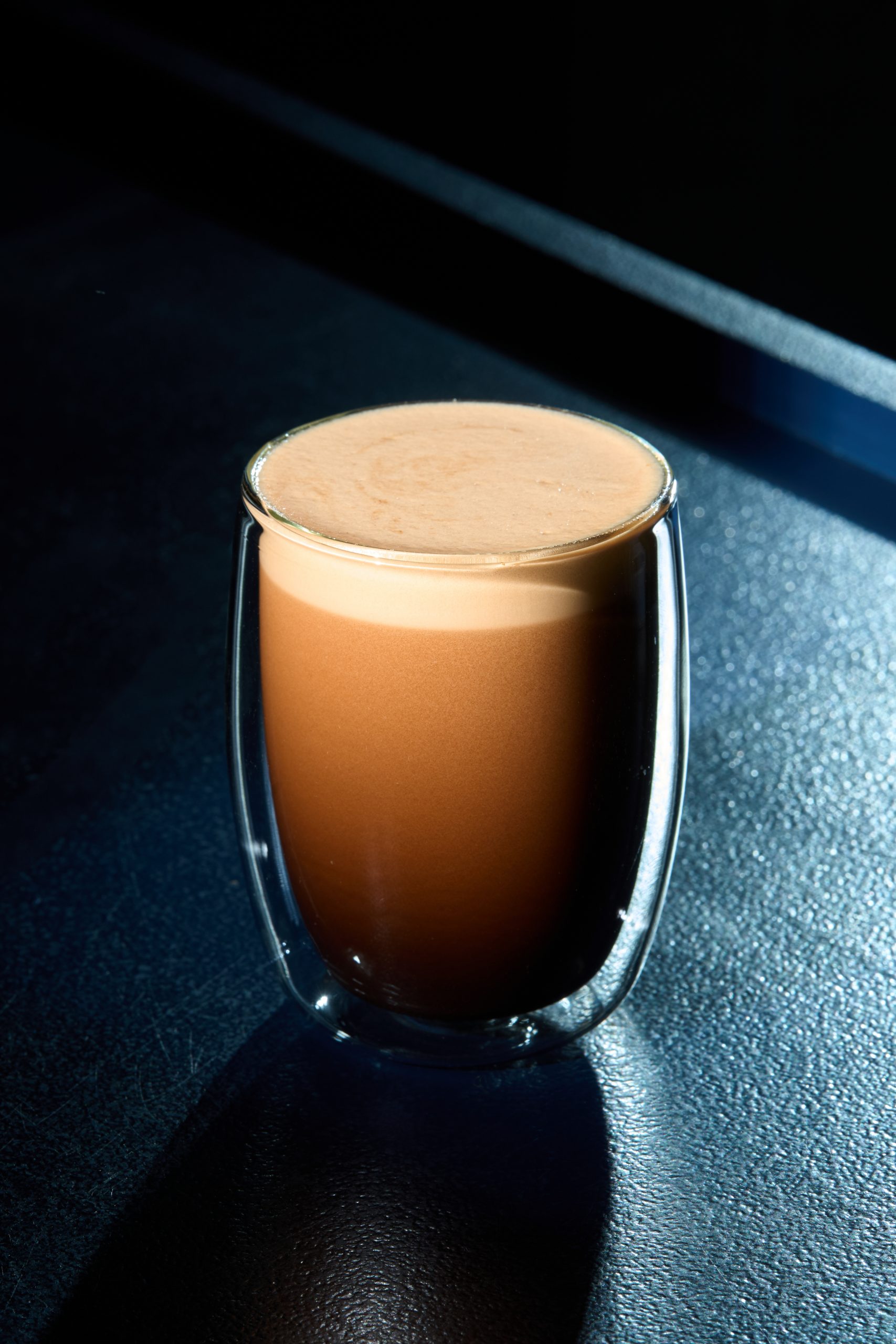 «Летатлин» готовят на основе эспрессо. Во вкусе — выразительный тандем вишни и шиповника, оттенённый мягкой сладостью мёда. Кардамон и специи завершают композицию долгим, тёплым и пряным послевкусием, которое постепенно раскрывается — как идея полёта, сначала хрупкая, а затем устремлённая вверх.