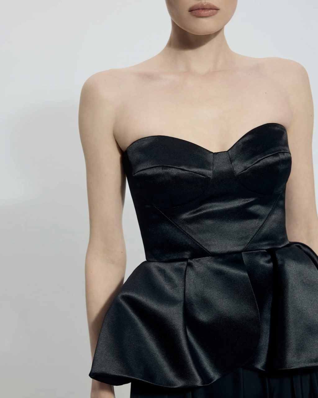 Корсетная модель из плотного атласа. Держит форму, подчёркивает талию, выглядит структурно и аккуратно.