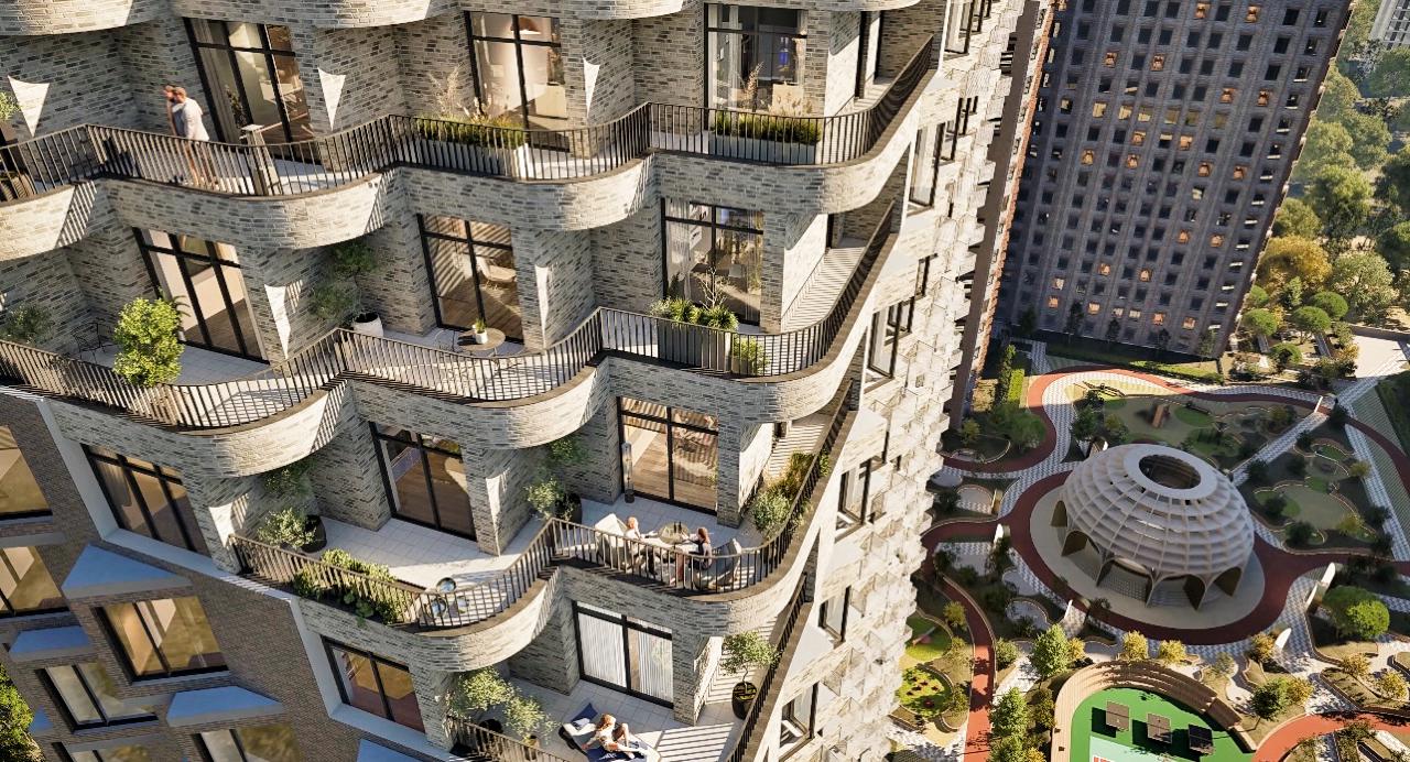 Арки, эркеры, французские балконы, керамический кирпич 12 оттенков — узнаваемый силуэт и плюс к инвестиционной привлекательности.