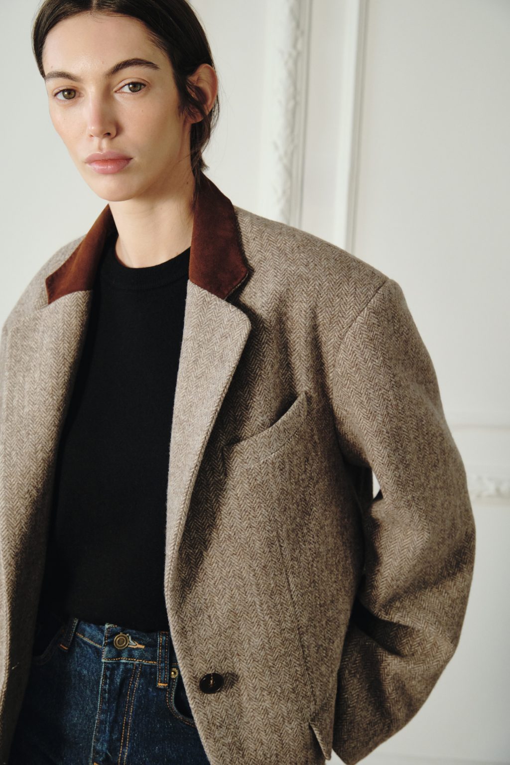 Укороченная куртка 90’s — это минимализм с характером: геометрия силуэта, мягкость линии и эстетика 90-х, переосмысленная в актуальном контексте. Со временем она раскрывается глубже, становясь почти продолжением владельца. Внутри — «Моя сила — быть собой».