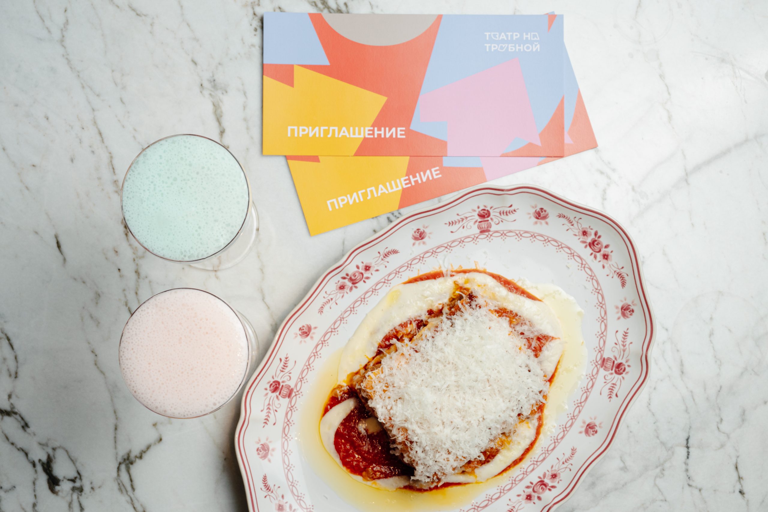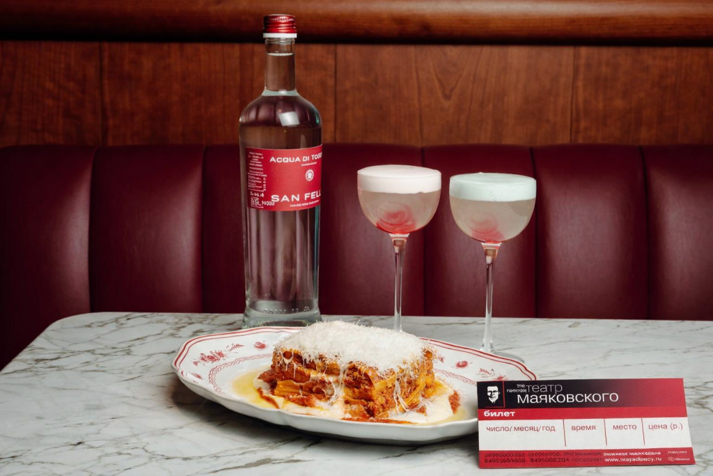 С 10 по 22 февраля этот словарь влюблённых становится ещё богаче. В течение двух недель при заказе сета для двоих — лазаньи на пару и дуэта авторских коктейлей Due Cuori. «Два сердца» (3500 руб.) — гости получают изящный подарок: билеты в лучшие московские театры — Современник, Театр на Трубной или Театр имени Вл. Маяковского. Прекрасный повод признаться в любви — друг другу и итальянской гастрономии Уиллиама Ламберти и Антона Пинского. Паста ручной работы из отборной итальянской муки и морепродуктов здесь звучит особенно убедительно — под неё легко сказать самые важные слова.