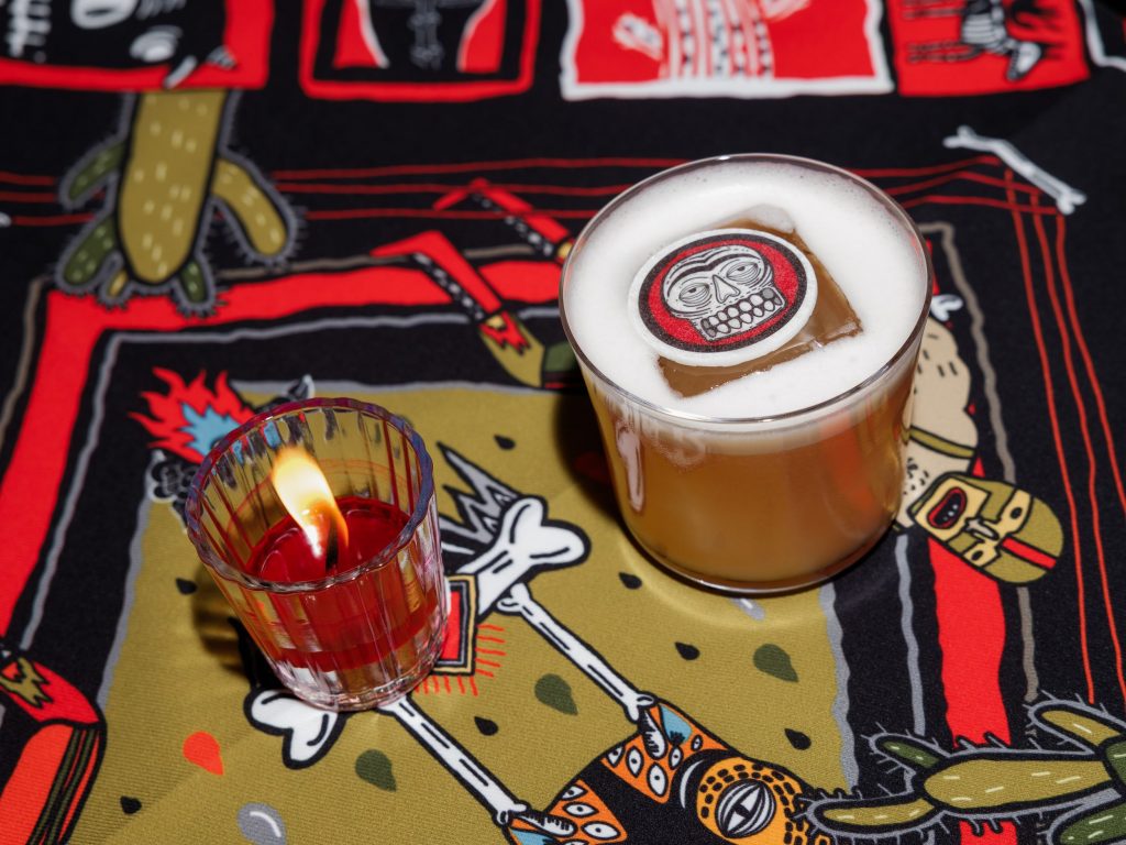 Коллаборация не ограничилась одеждой. К 26 марта в барной карте Sangre Fresca появится спешл-коктейль FIRST IN SPACE (900 руб.), созданный барной командой во главе с Иваном Пикулёвым совместно с командой бренда. Выдержанный ром, манговый ликер, пюре гуавы, сок лимона, соленая карамель и ангостура складываются в плотный, пряный профиль с тропической глубиной и деликатной сладостью. Подача в рокс-кубе с сахарным черепом завершает образ — напиток становится продолжением визуального кода коллекции.