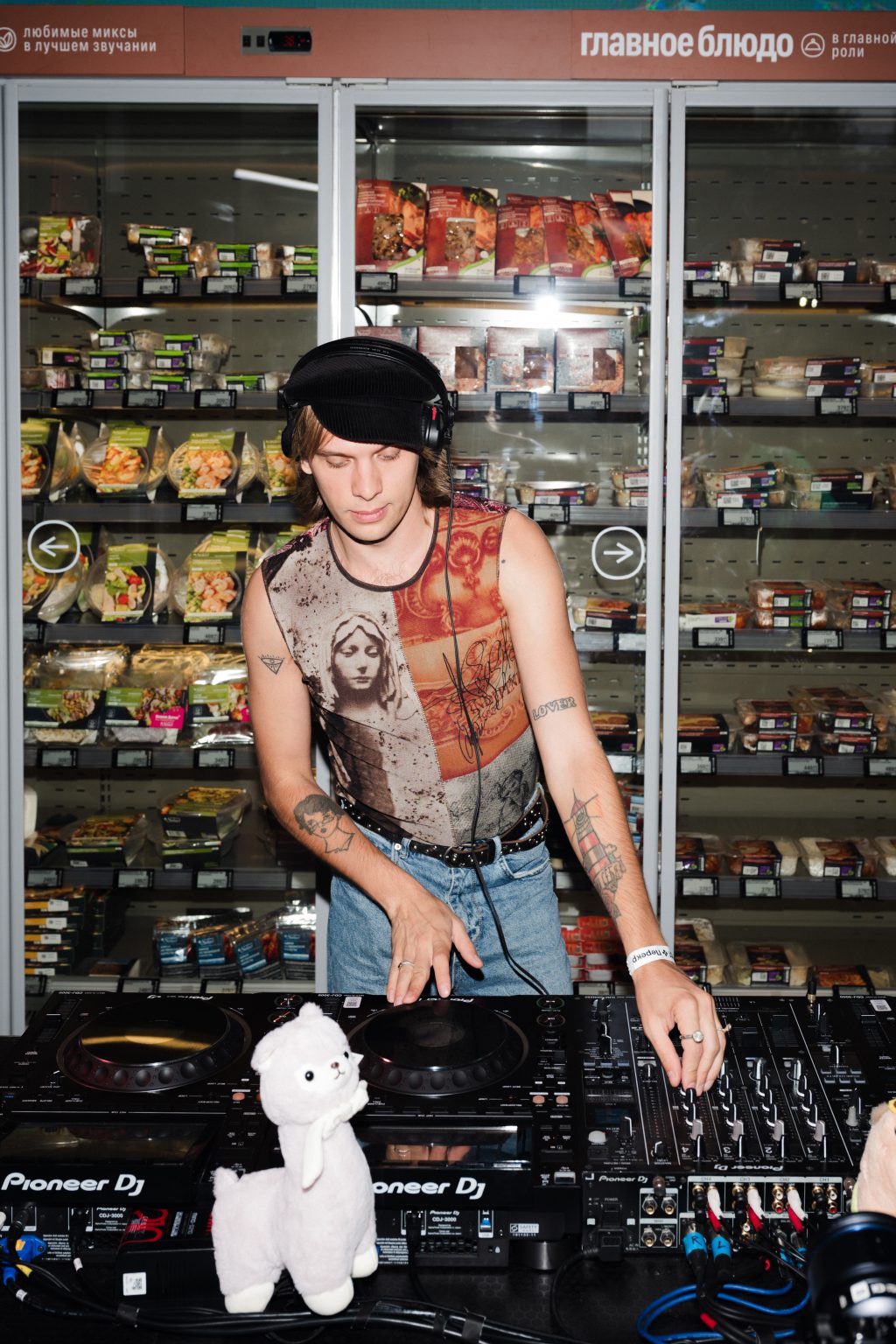 Гостей ждала неожиданная атмосфера: ночной рейв прямо среди полок с продуктами, где в качестве хэдлайнеров выступили DJ-сеты от Саши Спилберг, Sexstasy и Mark S. Арт-перформанс и энергичная музыка придали событию особую современную эстетику.