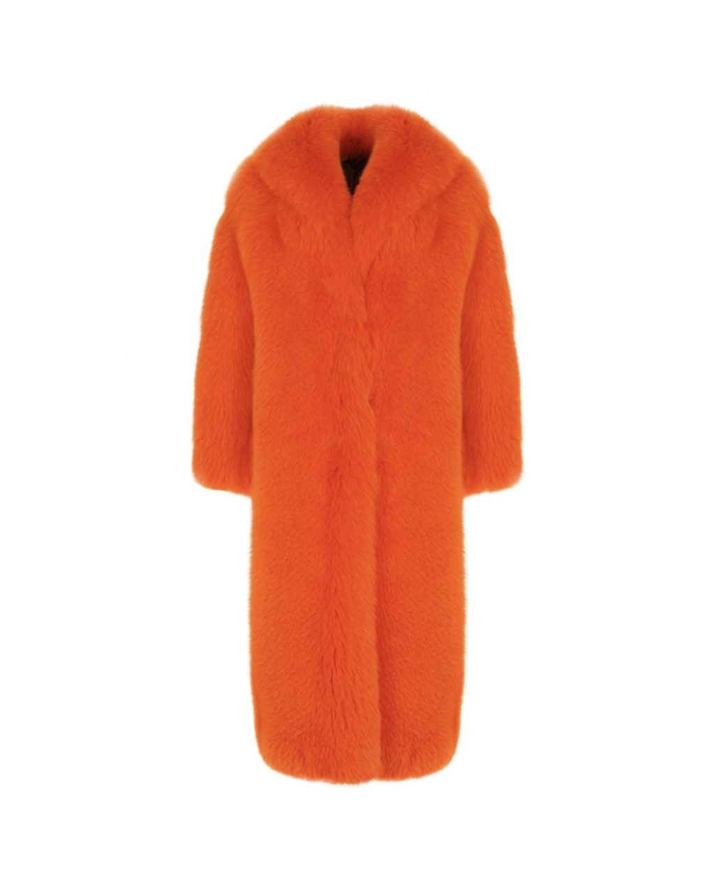 Шуба из шелковистого оранжевого песца — это тот самый акцент, который превращает золотистое платье в по-настоящему кинематографичный образ. Её теплый, огненный оттенок будто подхватывает блеск металла и усиливает его, создавая эффект роскошного сияния в движении. Свободный силуэт делает шубу не просто верхней одеждой, а самостоятельным жестом стиля — дерзким, уверенным, независимым.
