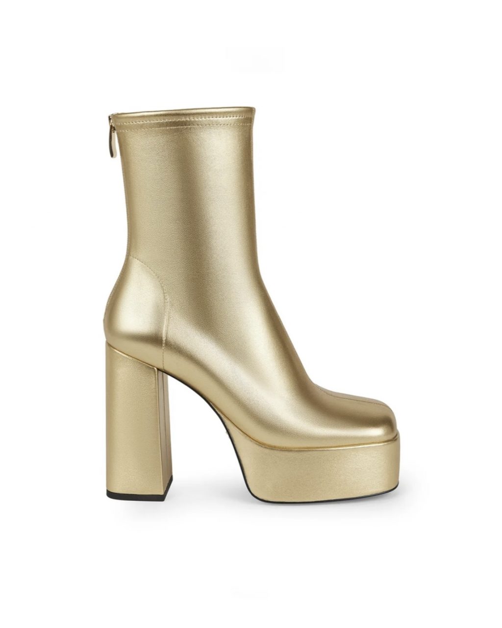 Редкий случай, когда обувь становится главным аргументом в пользу смелого образа. Металлическое сияние не просто поддерживает золотой акцент в образе — оно усиливает его, создавая ощущение уверенного шага и внутреннего ритма. Эти ботильоны как будто подталкивают идти чуть громче, чуть смелее, чуть ярче — идеально для вечера, который хочется запомнить.