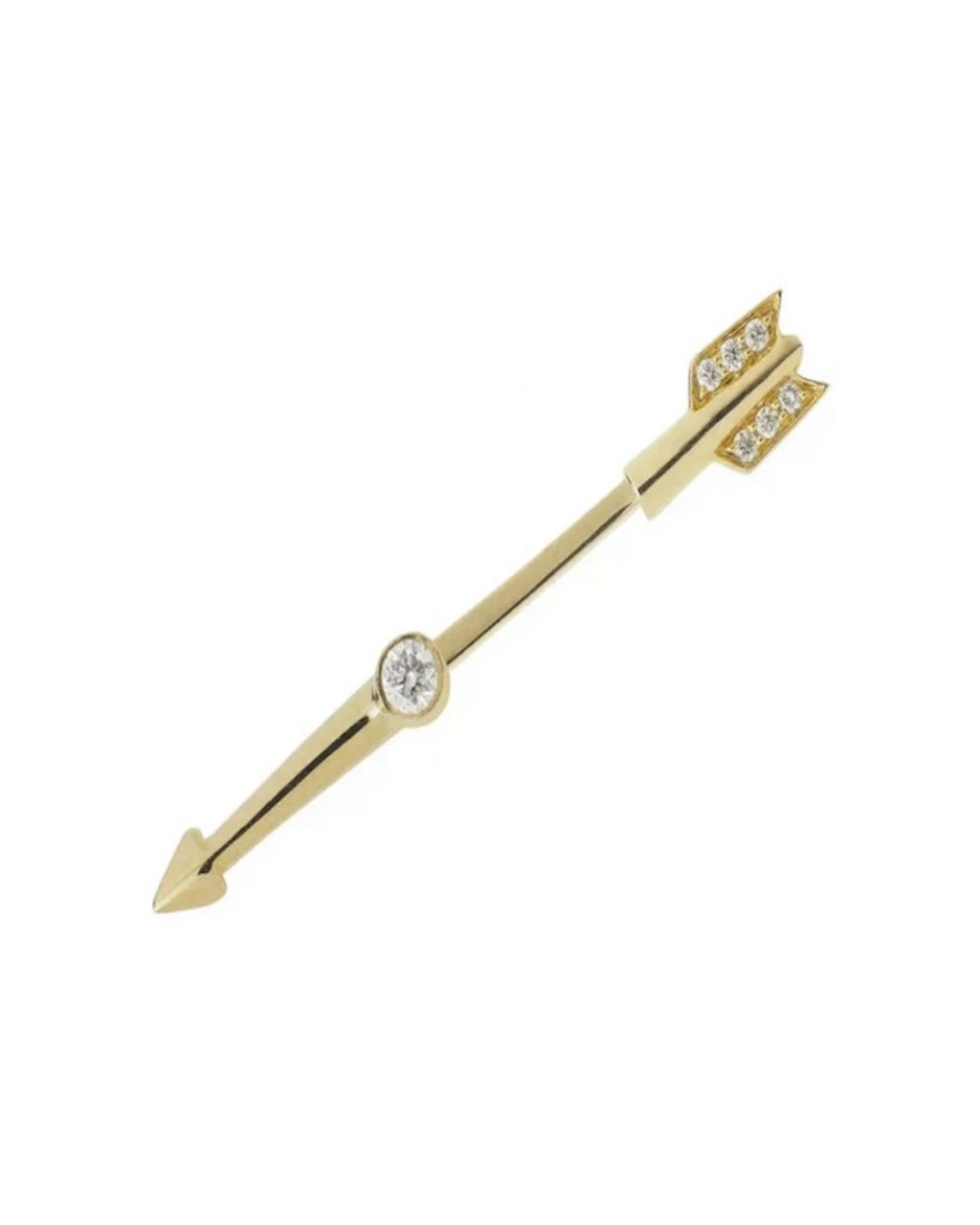 Это не просто украшение, а тонкая золотая стрела, нацеленная прямо в стиль. Лаконичная геометрия задаёт чёткий вектор, а бриллиантовая инкрустация превращает эту стрелу в световой след, который мерцает при каждом движении головы. Она создаёт ощущение современного талисмана — дерзкого, минималистичного и очень личного.
