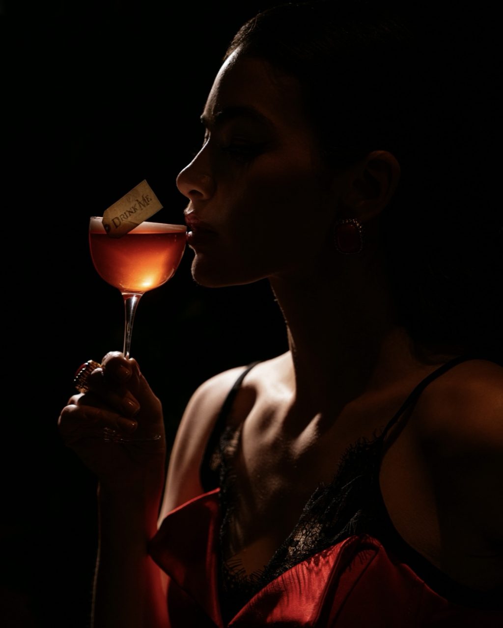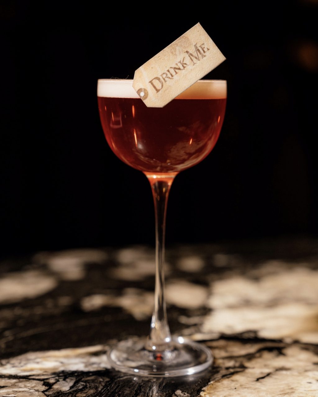 Коктейль Drink Me — прямая отсылка к той самой бутылочке из сказки, после которой привычный мир меняется и начинается чудо. В бокале — джин, свежесть арбуза, лёгкая горчинка апероля и ананас, настоянный на ройбуше. Drink Me задуман как идеальное сопровождение романтического вечера: один глоток — и вечер выходит за рамки обыденного.