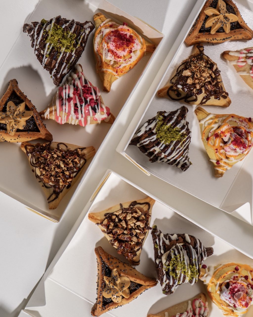 Главный символ Пурима — треугольное печенье «уши Амана» — здесь получает авторское прочтение. Пять вкусов на основе нежного рассыпчатого теста сабле превращают традиционный десерт в гастрономический сет настроений. Лимон, малина и белый шоколад — это яркий цитрусовый акцент с ягодной кислинкой; мак и сгущённое молоко — уютная классика; пекан и мисо-карамель — ореховая глубина с солоноватым послевкусием; смородина, миндаль и заварной крем — изящный баланс текстур; шоколадный брауни с фиником и фисташкой — насыщенность и благородная сладость. Печенье традиционно собирают в праздничные наборы — чтобы дарить, делиться и создавать настроение.