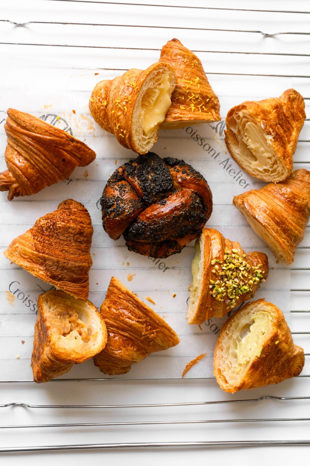 Croissant Atelier славится выпечкой с использованием высококачественной пшеничной муки и новозеландского сливочного масла, которое придаёт круассанам узнаваемый нежный сливочный вкус. Особенность пекарни — крупные круассаны весом 80 г, каждый формируется вручную в традиционном ремесленном стиле.
