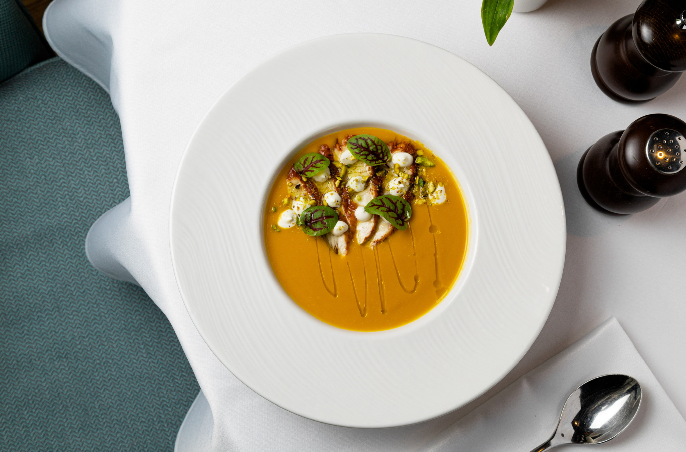 В центре внимания — натуральные осенние ингредиенты и сохранение вкусовых традиций. Хрустящий салат с груздями (750 ₽) соединяет отварной картофель с лесными грибами, сдобренными свежестью хвойных лесов. Более нежным раскрытием сезона становится салат с запечённой тыквой, эдамаме, авокадо, пармезаном и фисташками (750 ₽) — игра текстур и гармония сладости с ореховыми нотками.