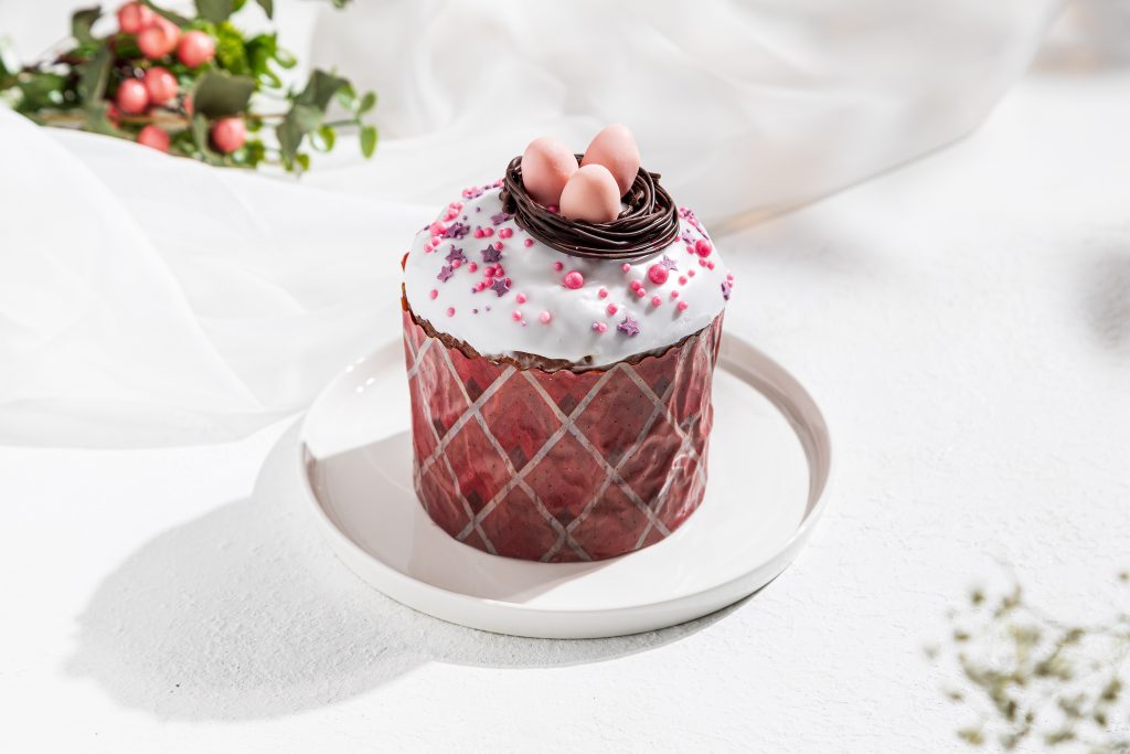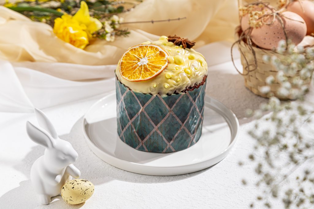 Дополняют коллекцию куличи на творожном бездрожжевом тесте — более плотные, с нежной влажной текстурой и кусочками цукатов папайи. Среди них — праздничный кулич с леденцом «Петушок» (880 р.) и вариант, украшенный вручную декоративным гнездом из настоящего шоколада с яйцами из любекского марципана (980 р.).