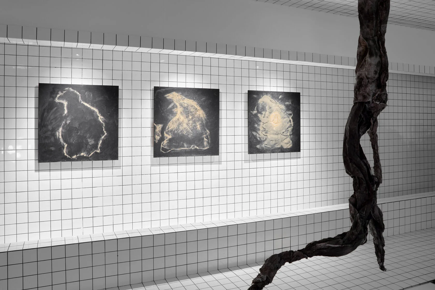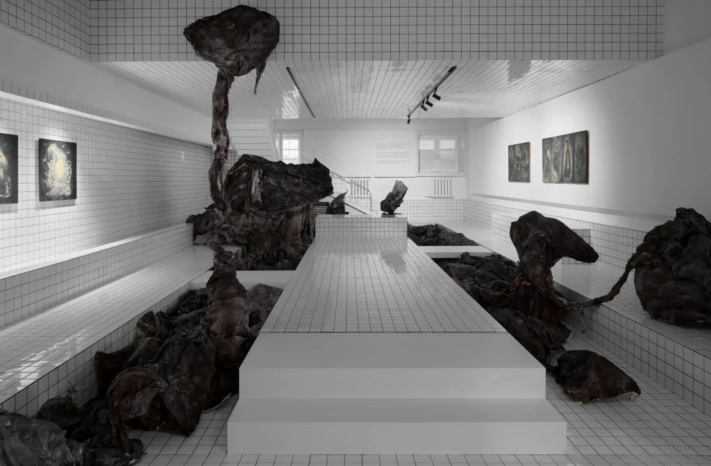Проект выстроен как тотальная инсталляция с почти подиумной драматургией: привычные зоны просмотра смещаются, создавая эффект внутреннего движения и меняя угол взгляда на искусство. В центре внимания — новые работы на фанере и пространственные конструкции, исследующие тему подземных ландшафтов как метафору внутренней трансформации. Это искусство не про наблюдение — это про проживание.